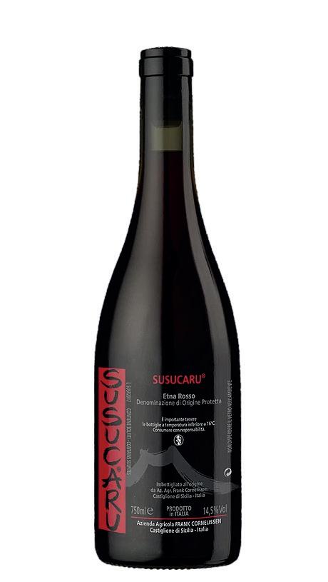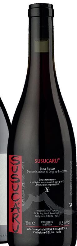 De Susucaru Rosso 2024 van Frank Cornelissen is een levendige, lichtvoetige rode wijn met sappig rood fruit en frisse zuren, perfect bij de mediterrane smaken van de caponata en de textuur van de tonijn. Serveer licht gekoeld (13–14 °C).