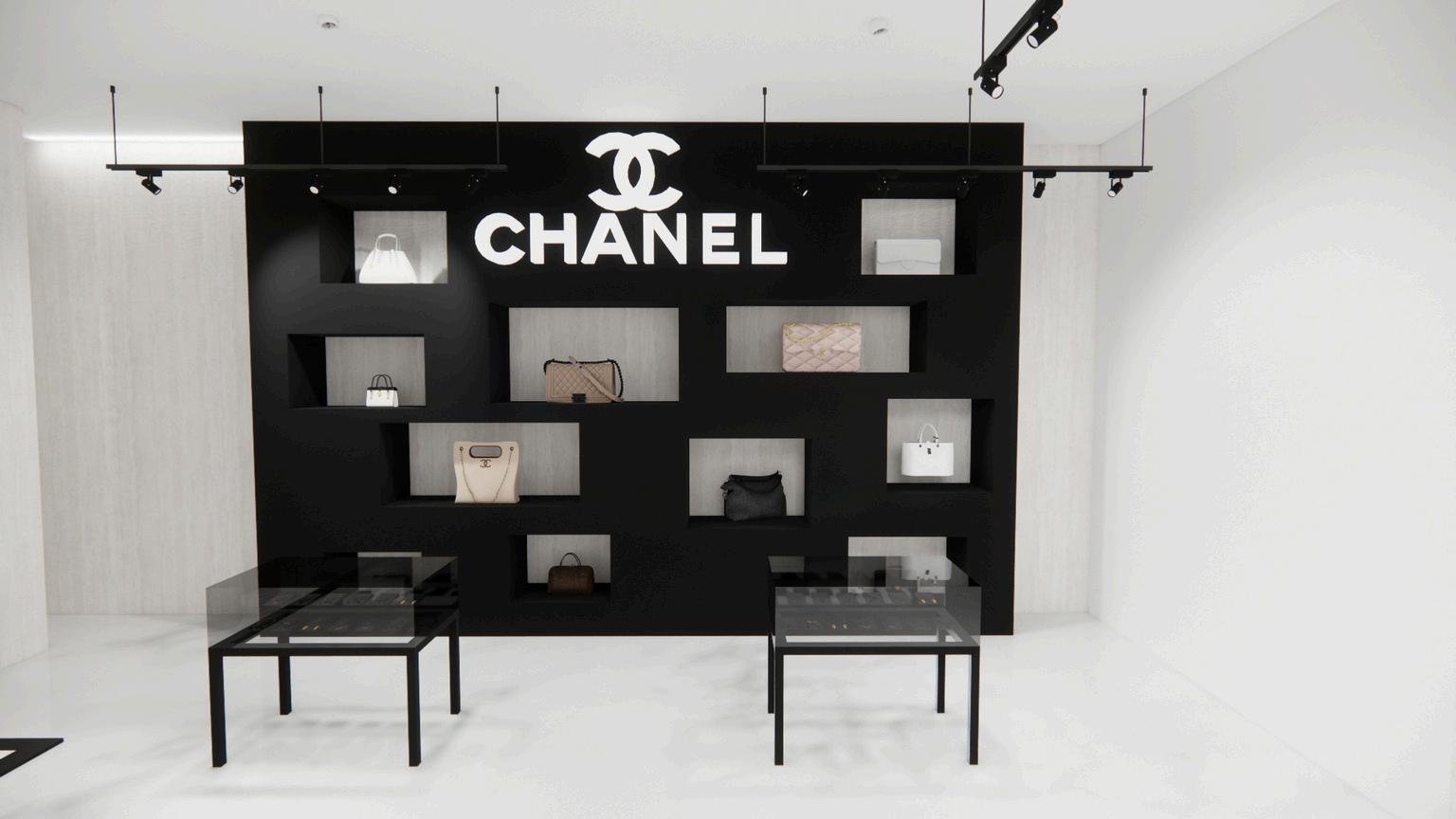For this project, we are creating a window display inspired by Chanel’s timeless elegance and modern femininity.
