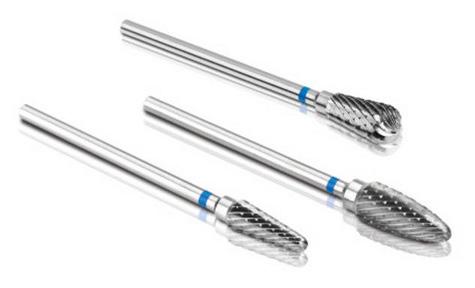 Triangular carbide cutting bur for quick, neat cutting of hard pressure moulding material.