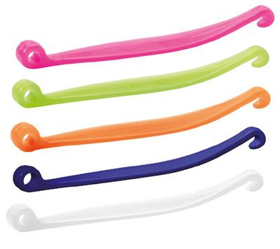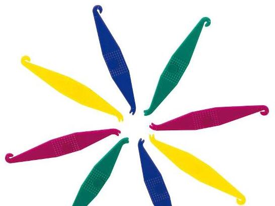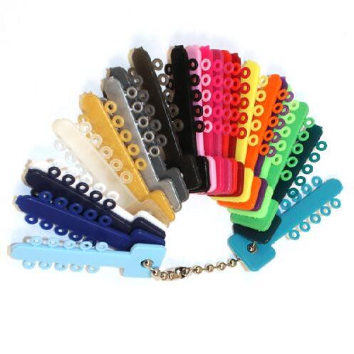 Elastic placer i forskjellige farger for å feste og fjerne strikk.