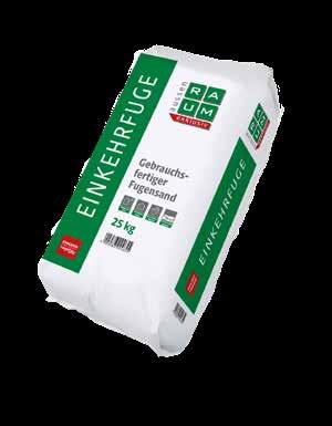 Gebrochene Gesteinskörnungen C90/3 der Korngruppen 0/4 oder 0/8 mit einem Größtkorn von 40–50 % der maximal zulässigen Fugenbreite mit ausreichendem Anteil an Stützkorn verwenden und auf die Filterstabilität zur Bettung achten. Fugenmaterial einkehren und einschlämmen bis die Fugen völlig gefüllt sind. Bei Verbundsystemen mit vom Hersteller vorgegebenen geringen Fugenbreiten ist auch die Verwendung der Korngruppe 0/2 zulässig.