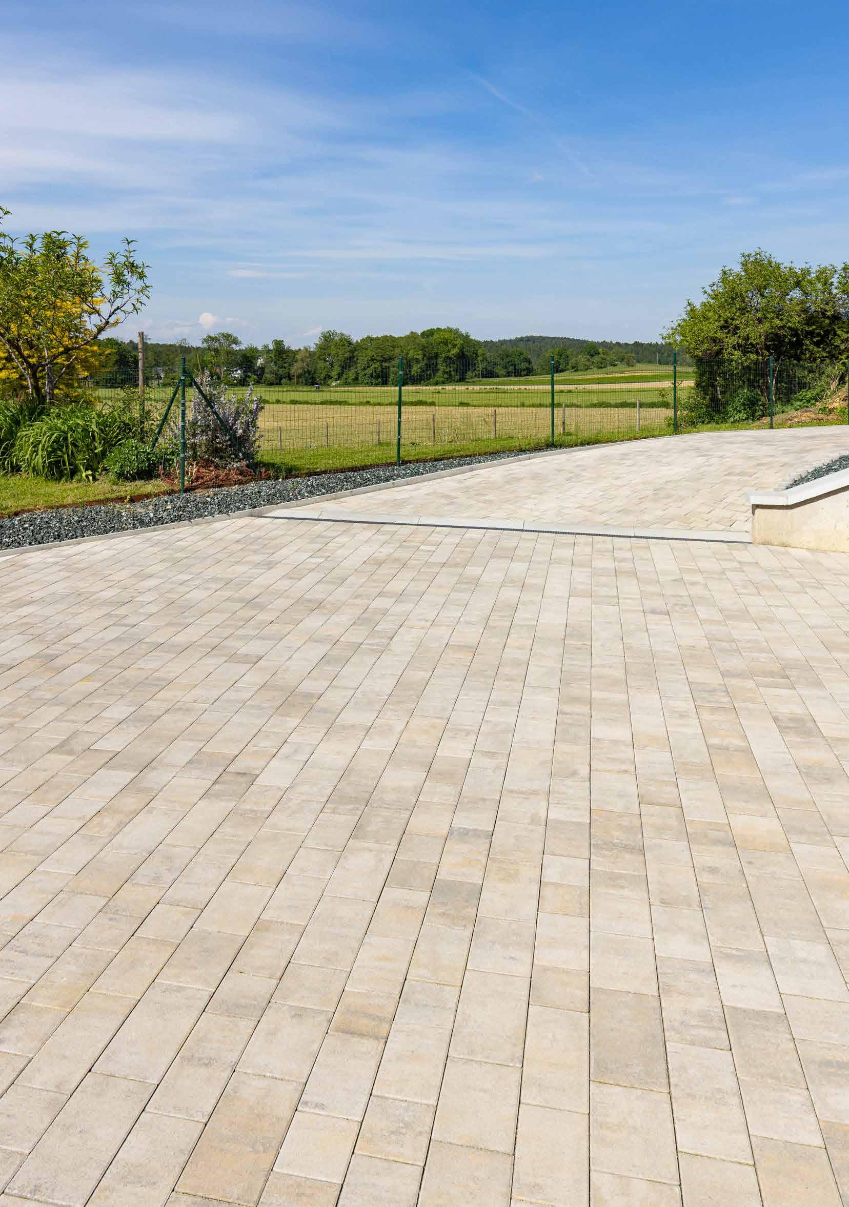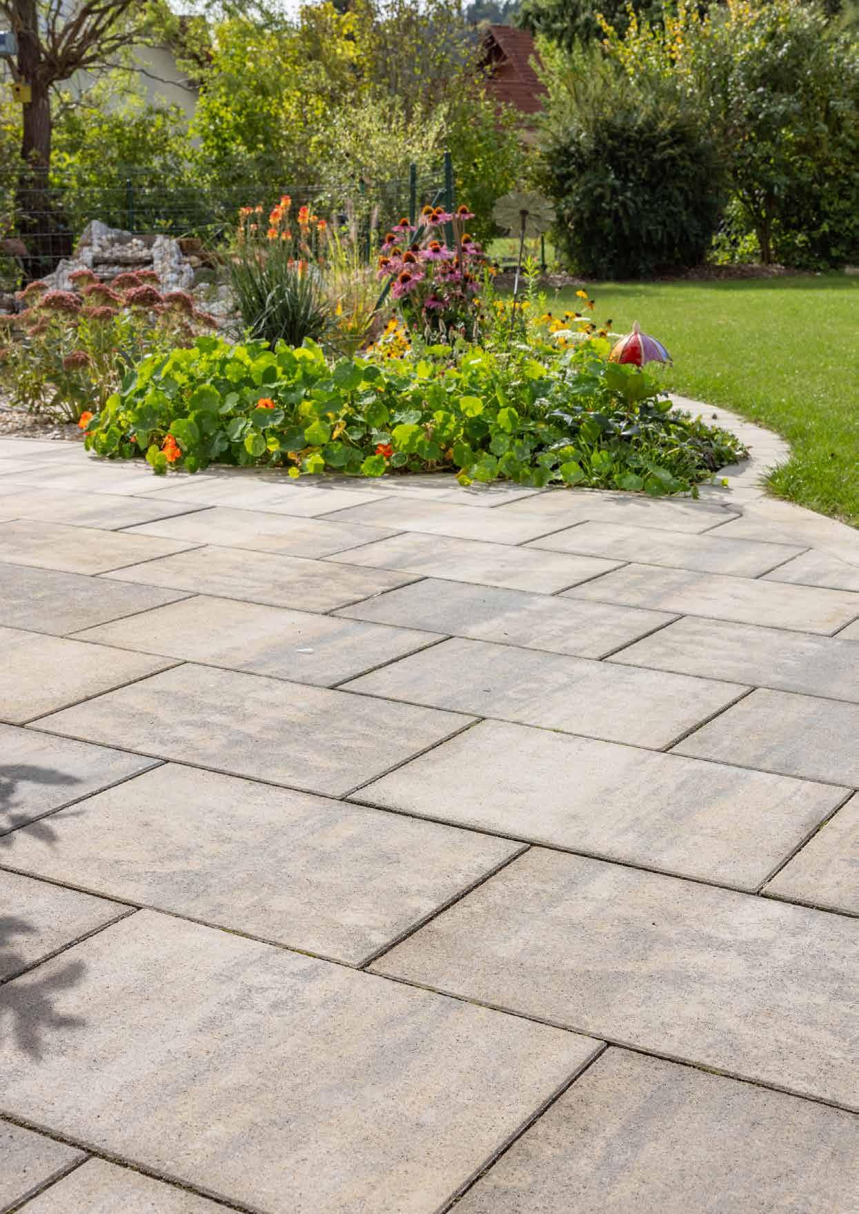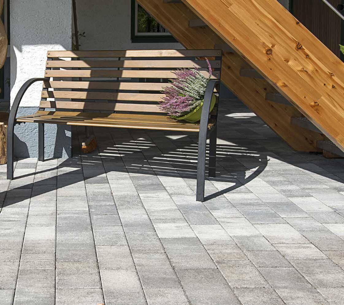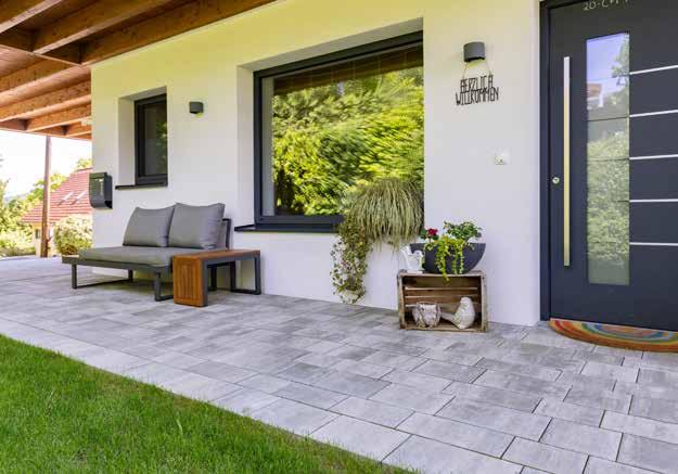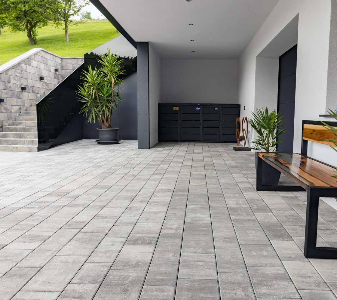 Die Pflasterplatte Pöllau ist in drei Farbnuancen erhältlich, die sich bestens in jeden Lebensraum integrieren lassen.