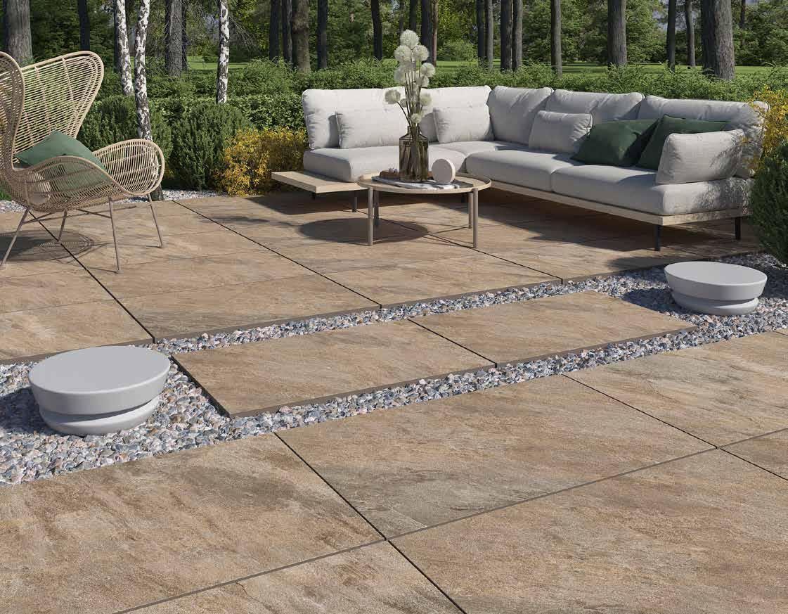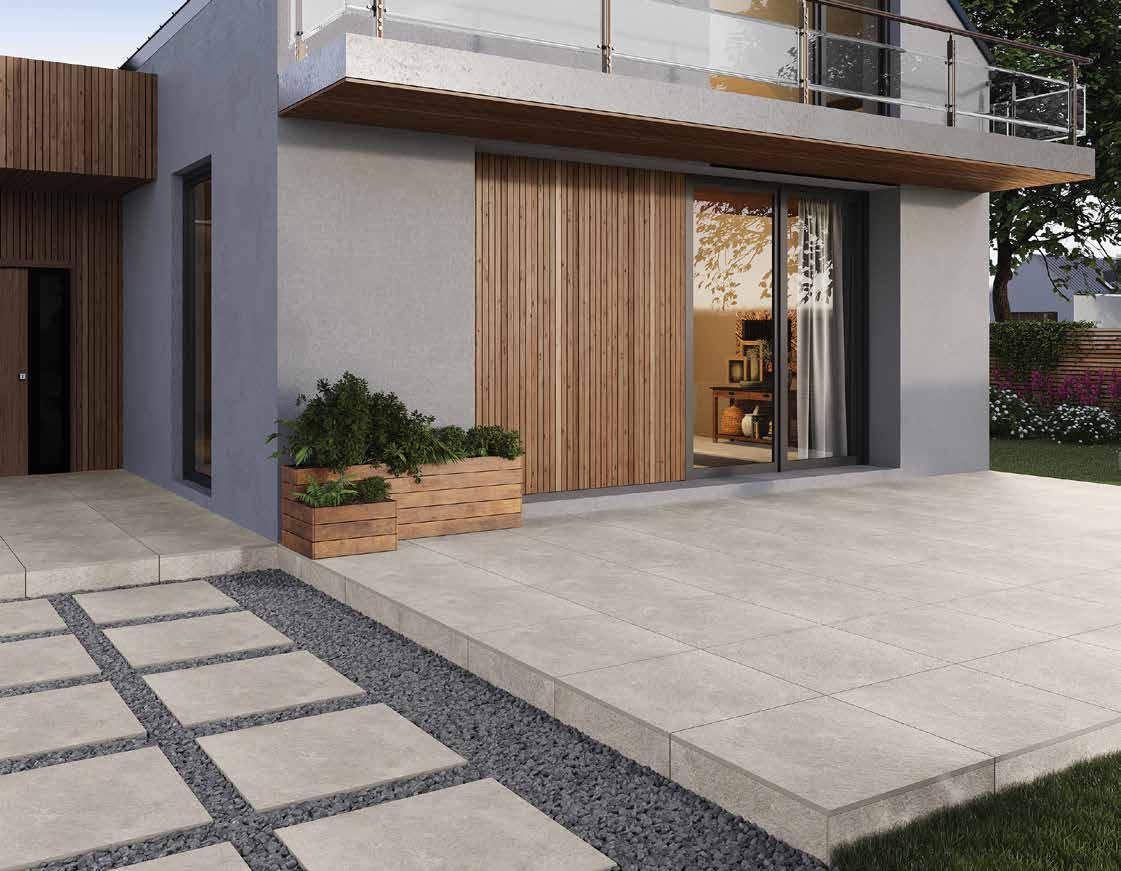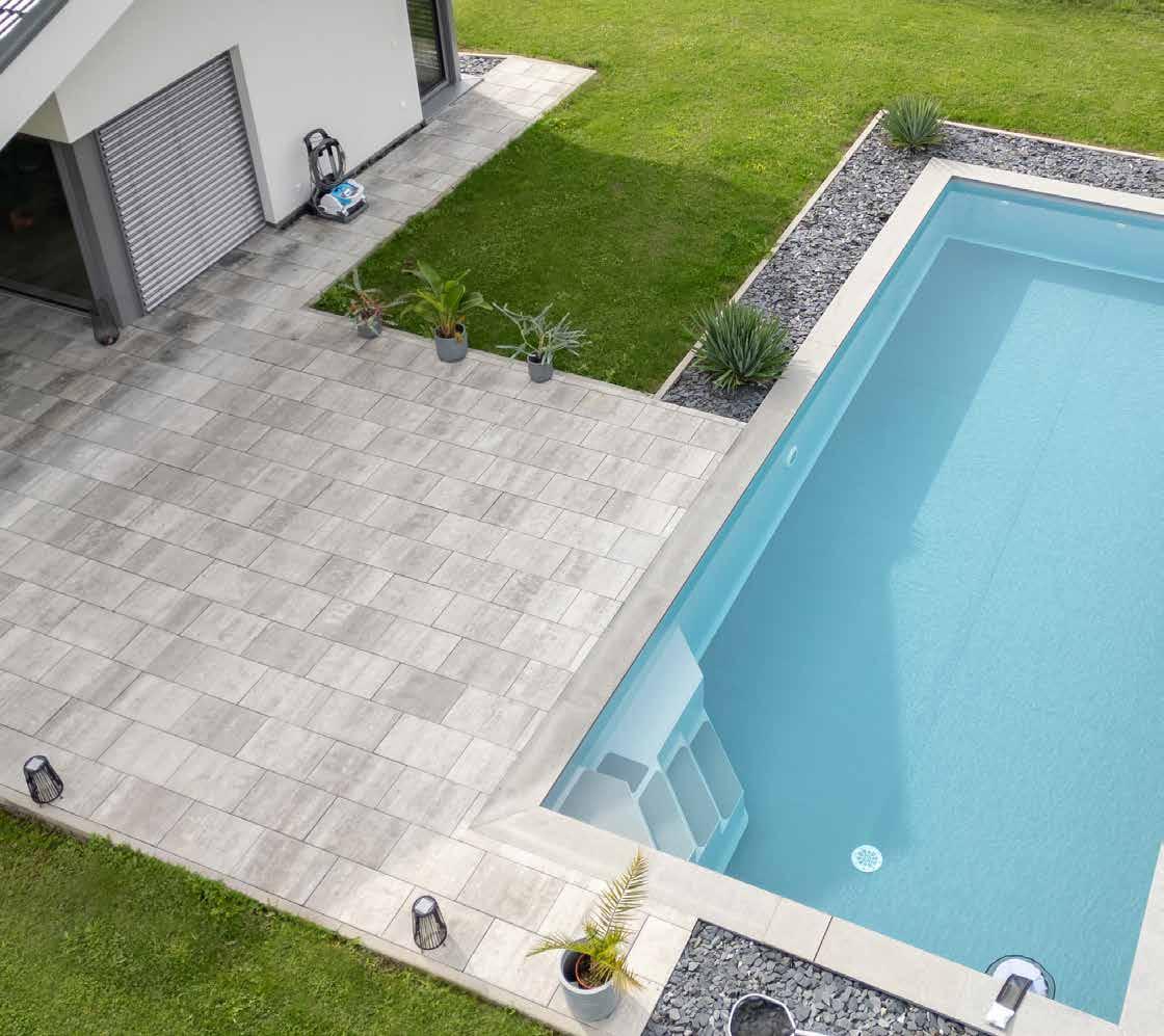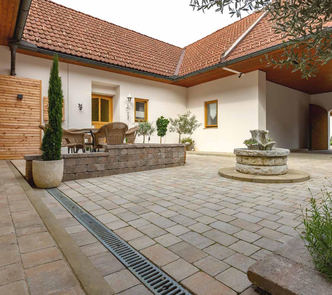 Die Pflasterplatte Pöllau ist in drei Farbnuancen erhältlich, die sich bestens in jeden Lebensraum integrieren lassen.