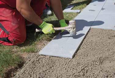 Platten mit einer Nenndicke bis einschließlich 5 cm sind nicht zu rütteln, sondern hammerfest zu verlegen, begrünbare Rasengittersteine, nur mit leichten, geeigneten Verdichtungsgeräten abrütteln.