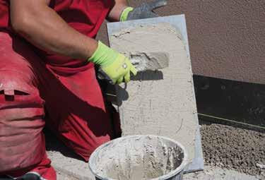 Ein 3–6 cm dickes, frostsicheres Mörtelbett in kleinen Abschnitten oder für die jeweils nächste Platte auftragen und grob planieren. Die Hinweise der Erzeuger sind zu beachten. Nicht unter einer Temperatur von 5°C verarbeiten. Wird eine gebundene Bettung ausgeführt, ist die Bettung durch das Hineintreiben des Steines oder der Platte bis auf fertige Höhe zu verdichten. Der verwendete Mörtel hat augenscheinlich den Konsistenzbereichen CO, C1 oder C2 zu entsprechen (erdfeucht).
