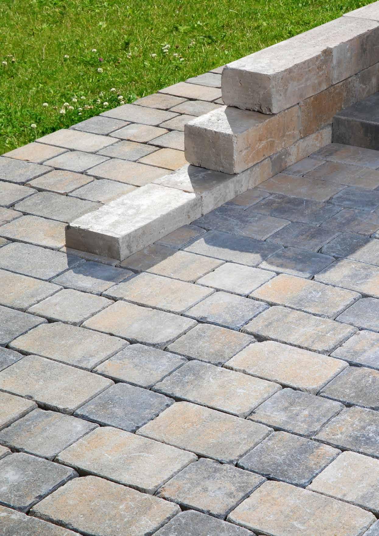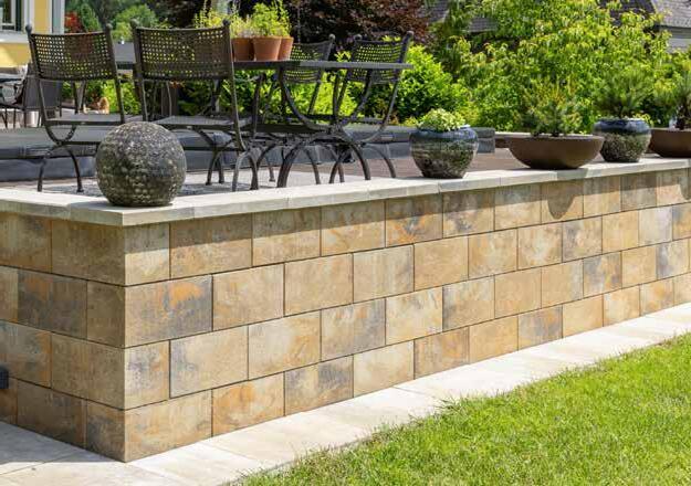 Blockstufe und Randleiste sorgen für ein lebendiges, natürliches Ambiente in Deinem Garten und können individuell mit dem Pottenstein-Pflaster kombiniert werden.