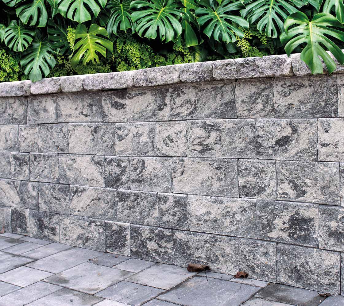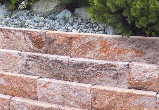 Die hochwertigen Böschungssteine, erhätlich in zwei unterschiedlichen Oberflächen, wirken sehr natürlich und lebendig und lassen jeden Außenbereich zu einem Paradies werden. Die gespaltene Oberfläche mit ihrem rustikalen Aussehen erinnert optisch an Naturstein.