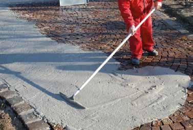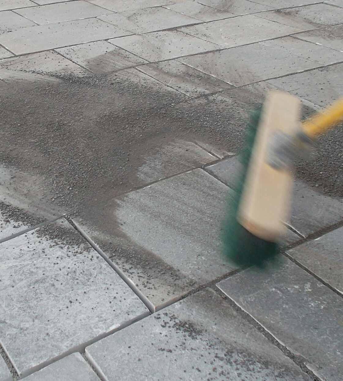 Nach Abschluss der Pflasterarbeiten wird die definitive Fugenfüllung eingebracht.