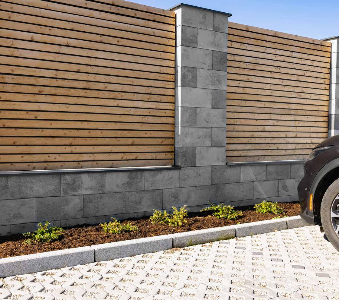 Pöllau Blockstufe und Pöllau Zaunstein – anthrazit-schattiert