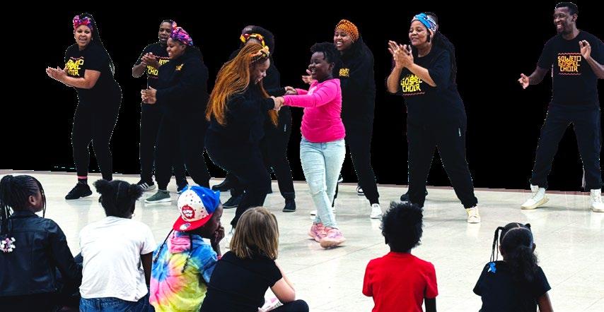 call-and-response songs. The young participants leapt in with enthusiasm, filling the room with laughter and movement. For many, this was their first experience with South African musical traditions, and the artists’ warmth made it instantly accessible.