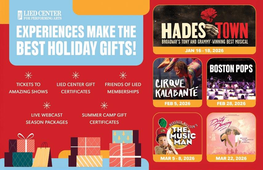 Friends of Lied members know the importance of supporting the Lied Center and the performing arts. Your membership is so valuable to us. We are in our last few weeks of fundraising for the year. Please consider supporting the Lied Center by gifting tickets to performances, increasing your FOL level for added benefit,s or joining us on the FOL board. We are accepting new applications through January. Wishing you Peace, Love and Joy.