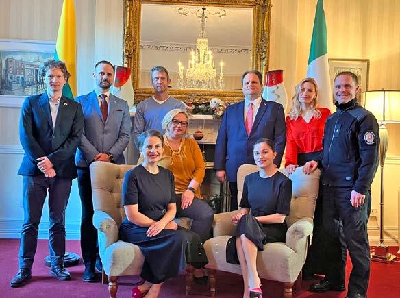 Šiandien, šią akimirką, fronto linijose Ukrainos žmonių gyvybių kaina yra ginama visų mūsų pamatinė orios egzis tencijos sąlyga - Laisvė. Šie metai leido mums permąstyti asmenines vertybes bei pasirinkimus ir suvokti, kad kiekvieno žmogaus indėlis kuriant bei išsaugant laisvę, demokratiją, vals tybingumą yra lemiantis. Pasididžiavimą sukelia žinojimas, kad ne vieno mūsų namuose ramybę ir viltį rado atvykę karo pabėgėliai iš Ukrainos,. Dėkojame visiems Airijoje gyvenantiems lietuviams, kurie organizuojate ir teikiate paramą kovojančiai Ukrainai, apglėbiate savo rūpesčiu Ukrainoje likusias ir stingdančią žiemą bei krentančių raketų siaubą dar turėsiančias išgyventi šeimas. Kiekvienam Jūsų už tai ką jau padarėte ir už tai ką dar padarysite tariame nuoširdų AČIŪ. Dėkojame kiekvienam tautiečiui nenuilstamai puoselėjančiam lietuviškas tradicijas, saugan tiems ir vaikams perduodantiems gimtąją kalbą, skleidžiantiems žinią apie Lietuvą ir išlaikantiems tvirtą ryšį su Ja. Šv. Kalėdų proga kiekvienam Jūsų linkime namų jaukumo, sielos ramybės, Jus supančių žmonių meilės. Prisimindami tuos, kurių jau nėra šalia, ne pamirškime apkabinti gyvuosius – Lietuvoje ir kitur pasaulyje gyvenančius artimuosius bei draugus. Savo gerumu ypač apdovanokime tuos, kuriems labiausiai stinga dėmesio ir žmogiškos atrumos. Nenustokime dalintis meile ir visus 2023 metus savo darbais ir poel giais liudykime tai kas geriausio užkoduota žodyje - Lietuva. Meilės, sveikatos, taikos Jūsų namams!