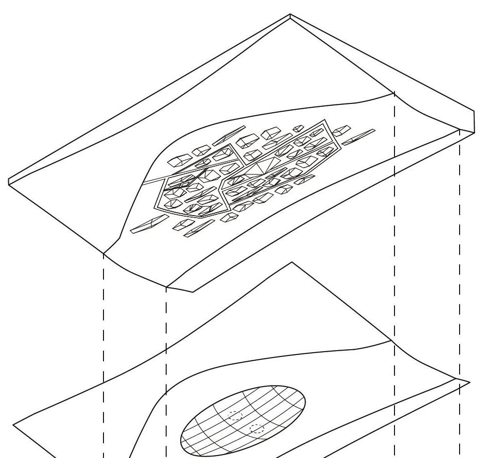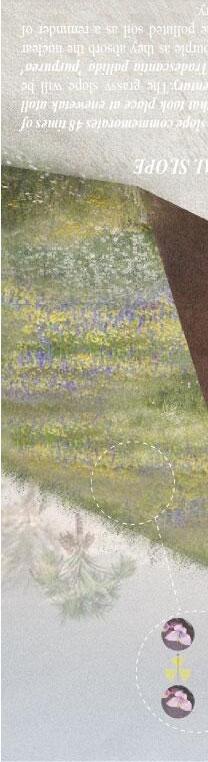 On the basis of the first layer of terrain, the raised and sunken terrains and Hyperaccumulation plants are combined to purify nuclear pollution and create a memorial landscape
