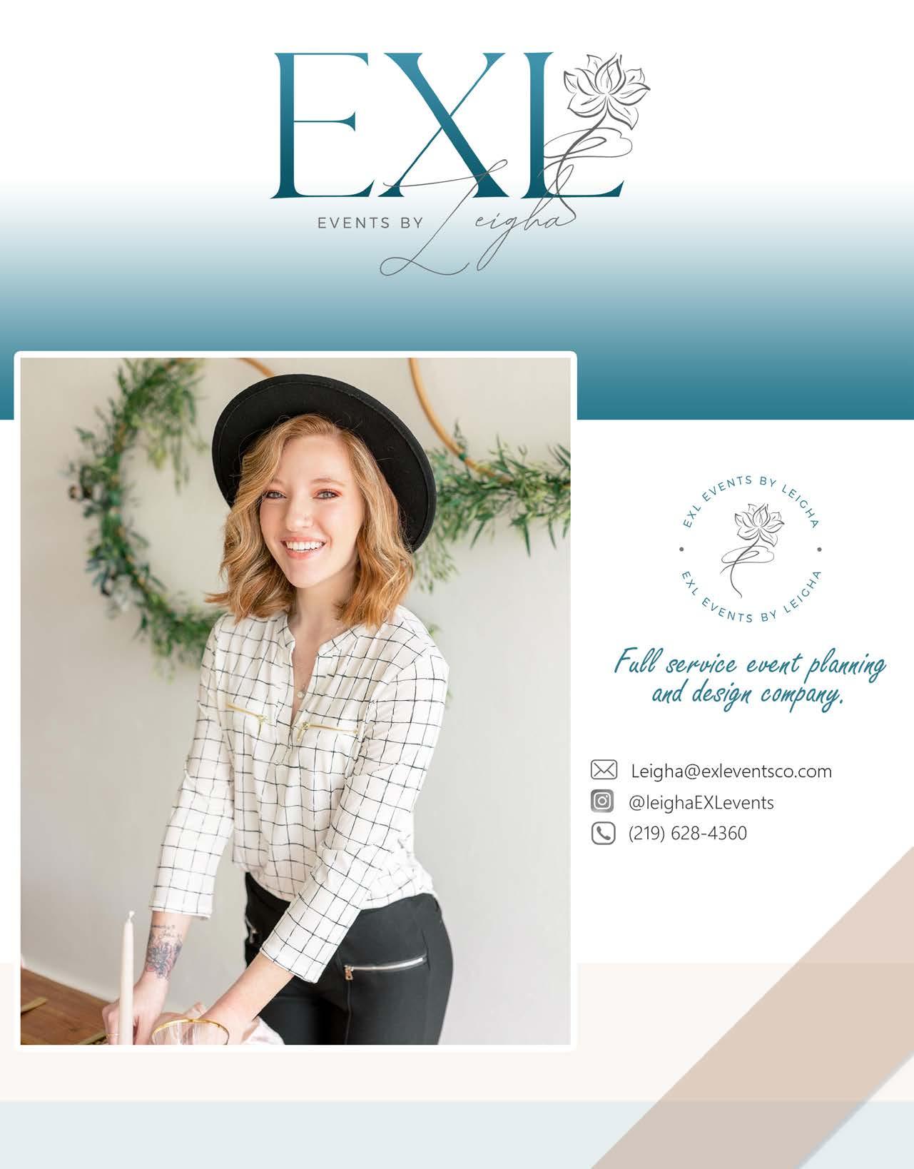 EXL Events Co. New Buffalo, MI, 219.628.4360 instagram.com/ leigha.exleventsco See ad on page 73.