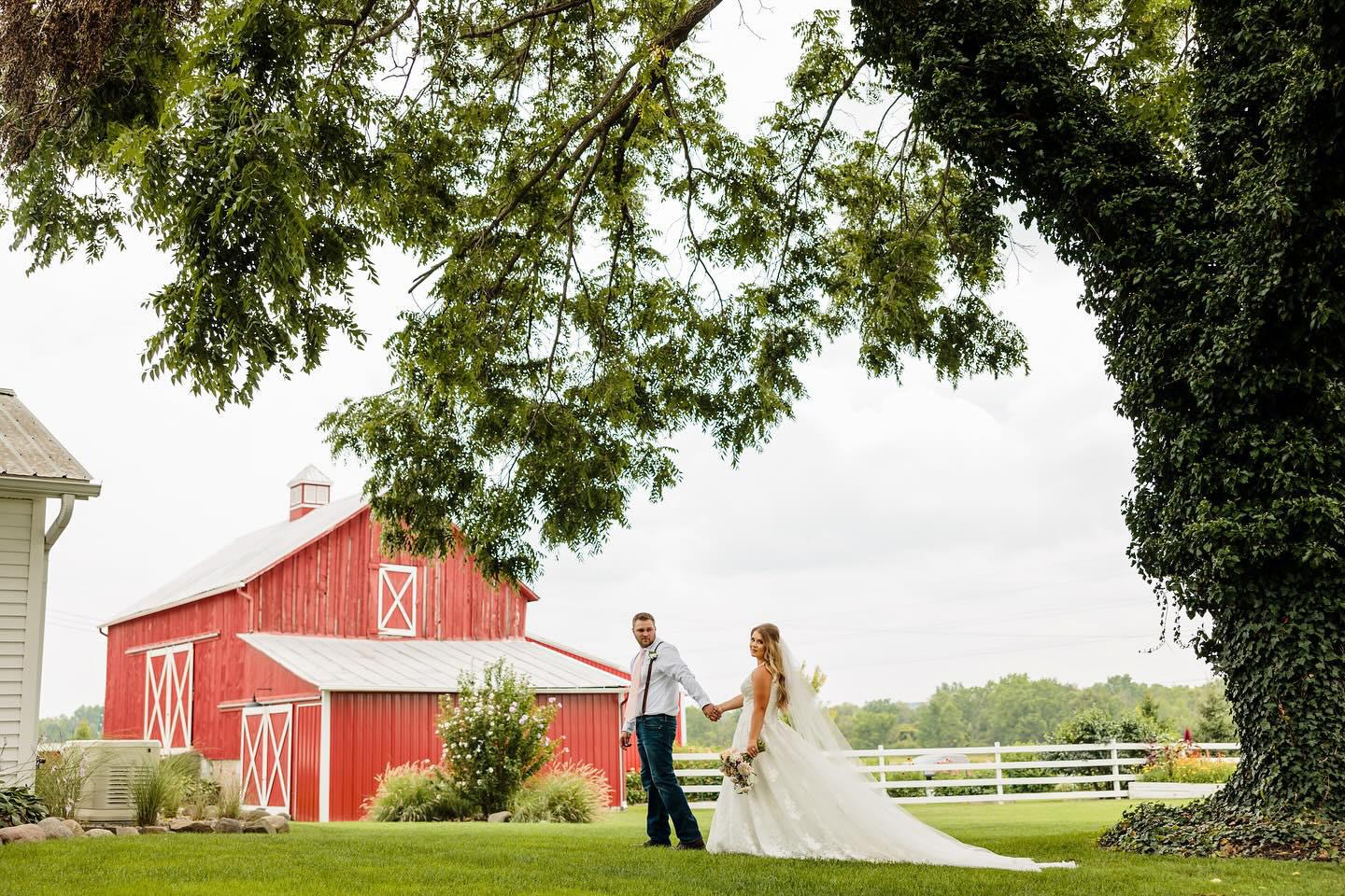 Our wedding venue is nestled in the heart of Michigan, just 30 minutes away from Grand Rapids, Kalamazoo & the Lakeshore. Our stunning gambrel barn is set on 20 acres of pristine, manicured grounds perfect for taking your wedding vows and making unforgettable memories. Our barn has exposed wood beams & weathered plank walls giving it a warm atmosphere perfect for any wedding style!