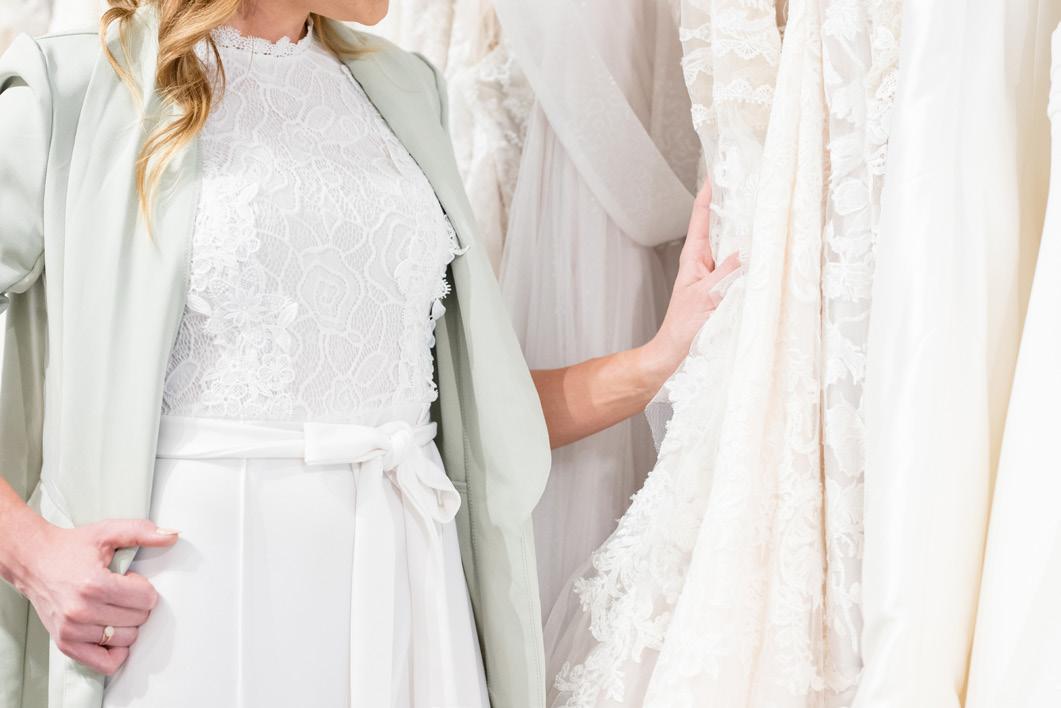 Our bride wowed in a sleek, modern gown featuring a striking cat-eye neckline and off-the-shoulder sleeves—a fresh, edgy twist on timeless bridal style. For the reception look, a draped scarf added movement and sophistication. With the growing trend of wedding after-parties, it was important to Jean to showcase a second look, and the high-neck champagne dress did just that! Its sleek silhouette brought a sense of fun and celebration while still feeling elevated and fashion-forward. Ellie Rose Designs styled the bride’s soft, romantic curls in a relaxed updo for a natural glam look that paired perfectly with both dresses. Lizzy Faulk Makeup Artist completed the look with glowing skin, shimmery neutral eyeshadow and a polished finish!
