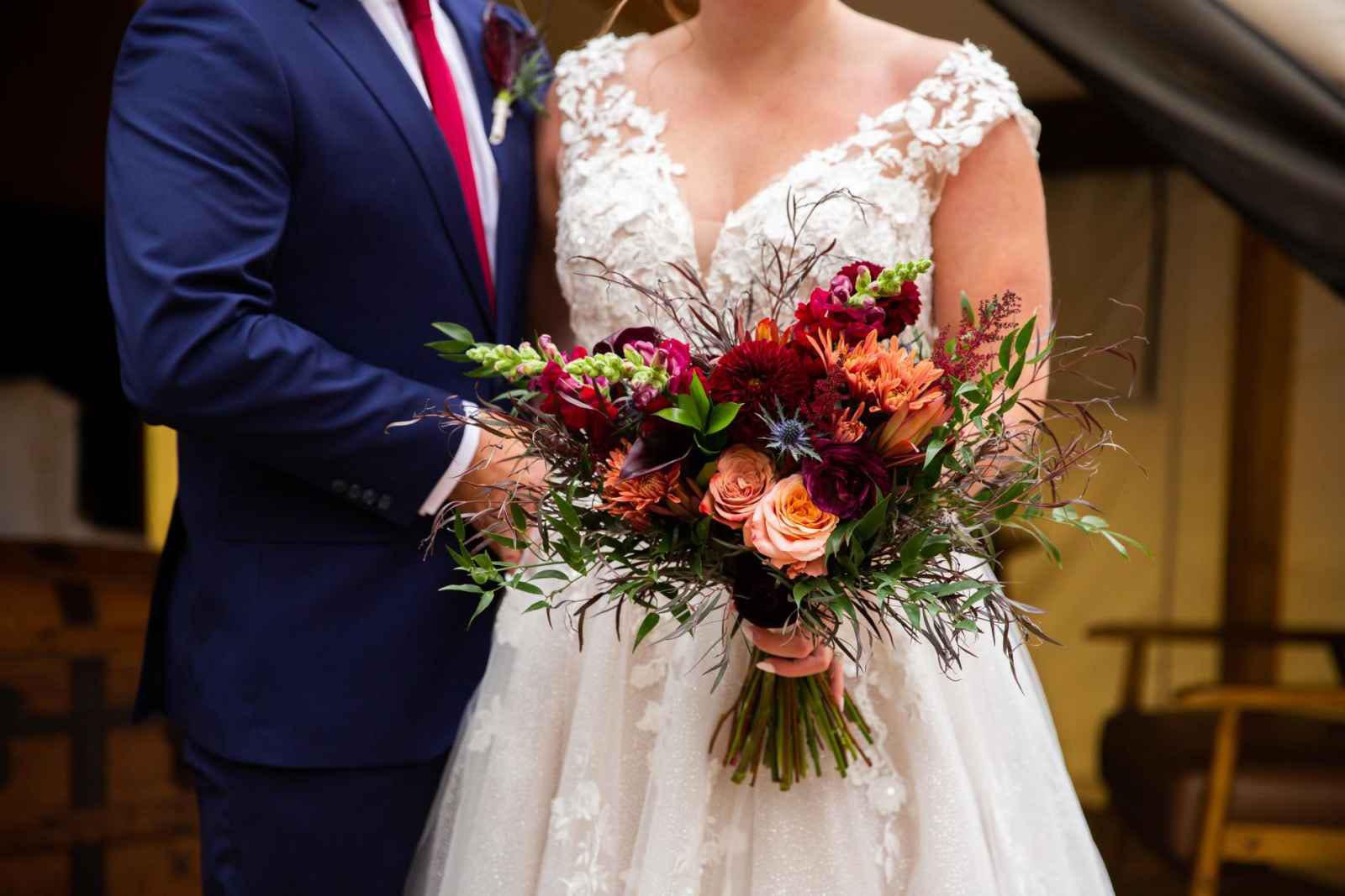 Though Lauren imagined a sophisticated black-tie wedding with gold accents, Brandon, an Indiana University grad, vetoed the “Purdue colors.” So, they decided on black-tie elegance with mixed metals instead. Since they were ringing in the New Year on their big day, they added plenty of sparkle to their opulent occasion, leaning into moody and romantic vibes for the décor. Because of their chosen date, they opted for a nontraditional timeline. The ceremony began at 7:30 and the celebration lasted until one in the morning, so they could ring in the New Year with all their friends and family! For a fun beginning to the year, Brandon and Lauren also sent their guests home with scratch-off lottery tickets instead of more traditional wedding favors.