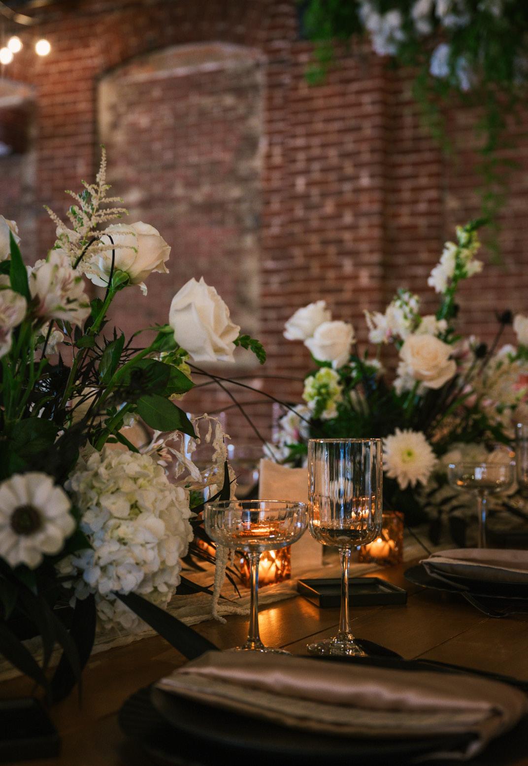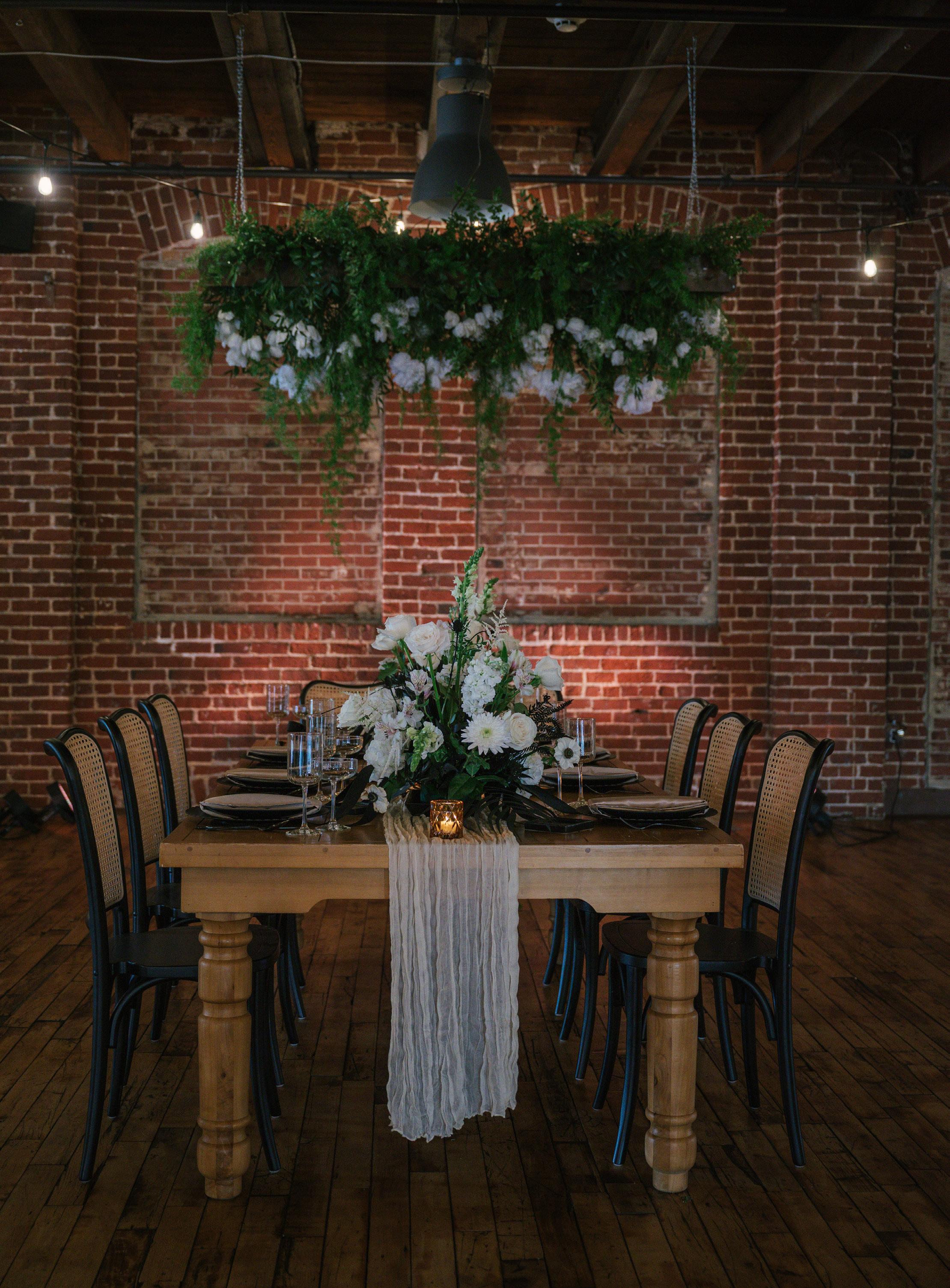 For our spring/summer Central Indiana cover shoot, Jean Rivers and her team at Blue Llama Events set out to prove that black-tie elegance and industrial charm can coexist beautifully. This shoot was all about blending sophistication with edge—showcasing how a venue with exposed brick, steel beams and city views can still host an elevated, romantic affair. Through refined styling, luxe details and a modern aesthetic, Jean and our talented team brought this bold vision to life, capturing a striking contrast that felt both intentional and effortlessly chic!