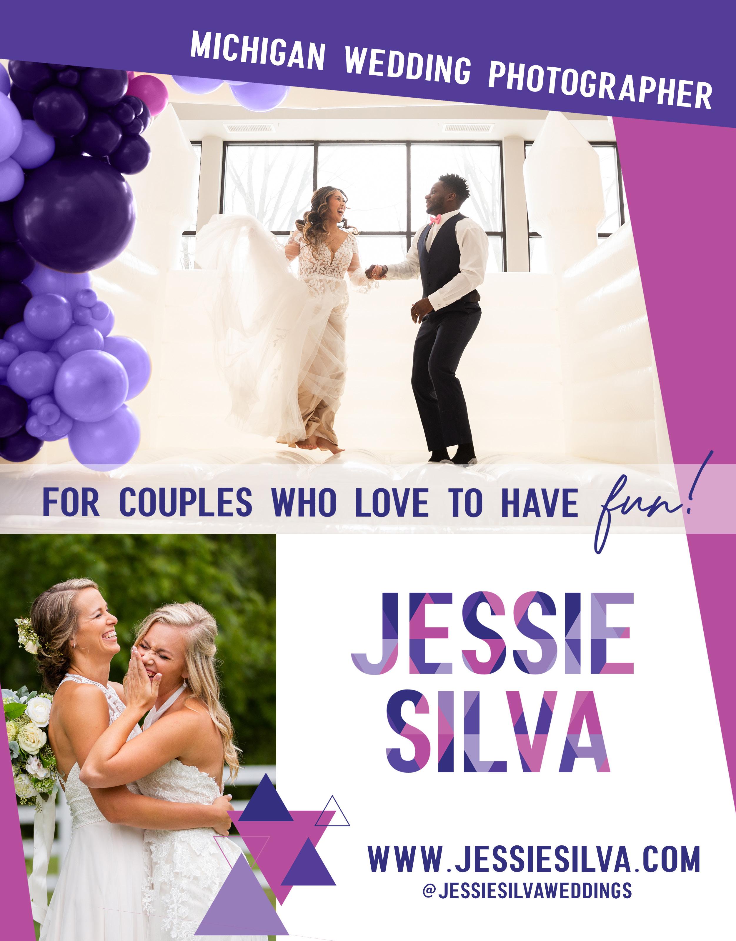 Jessie Silva is a Grand Rapids based wedding photographer obsessed with making your entire experience fun, stress-free and so comfortable that you spend your entire wedding day feeling as good as you did on the night you fell in love. With 15 years of experience, she is an expert at getting you to loosen up and get the shot, and will make you feel like models! She will be your own personal hype woman, and get just as excited for you as you were the day you said “YES!"