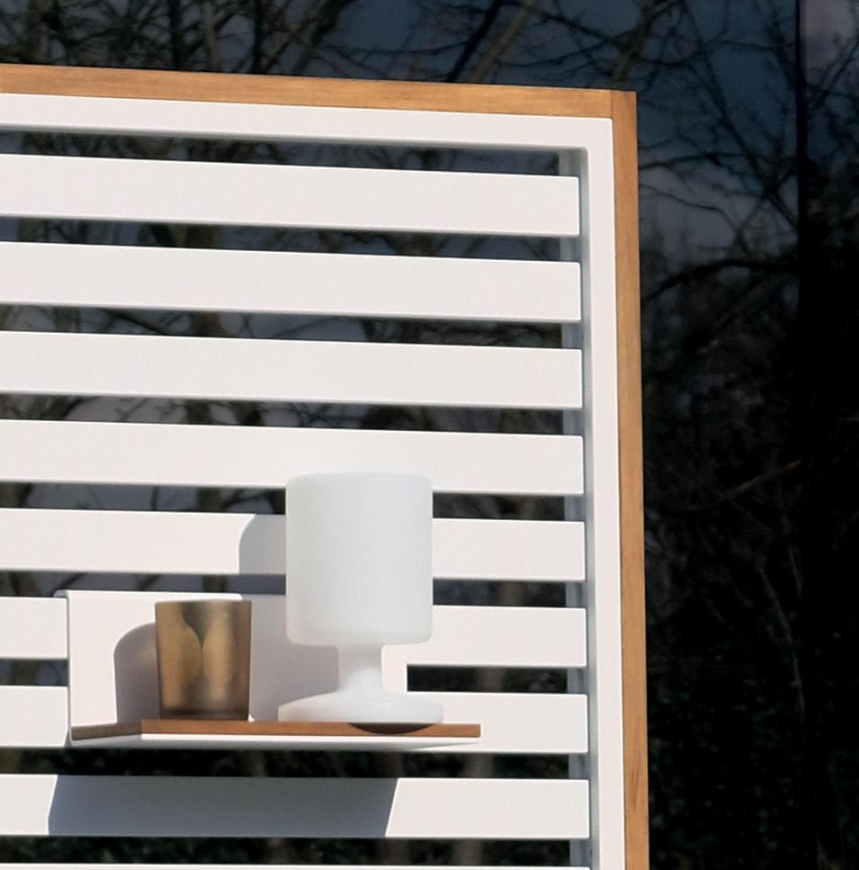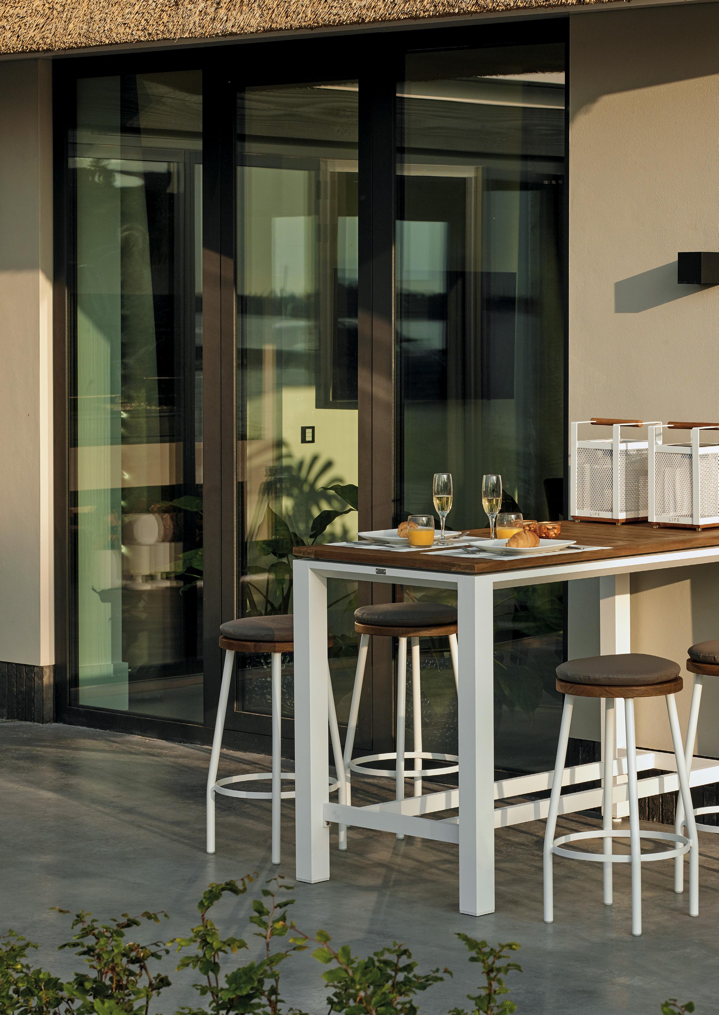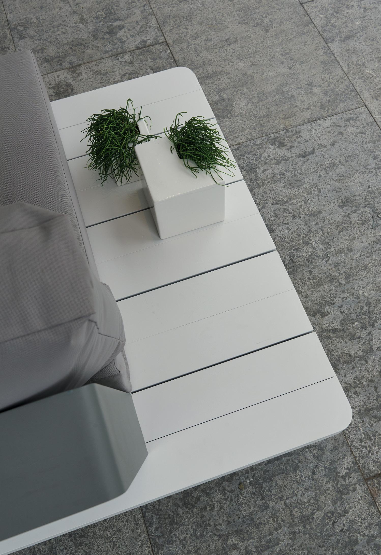 FRAME: WHITE ALUMINIUM TABLE TOP: ROBUST TEAK