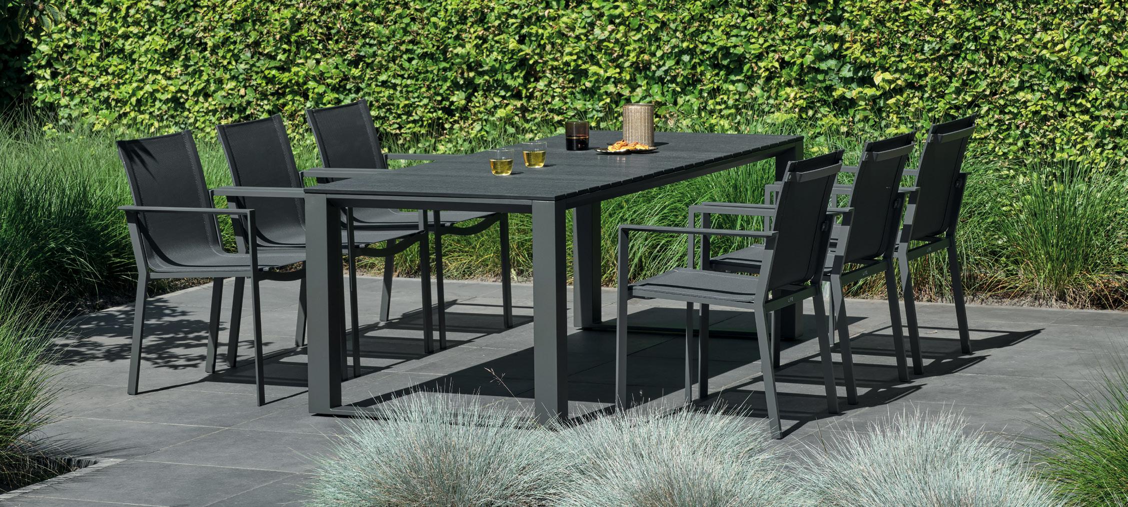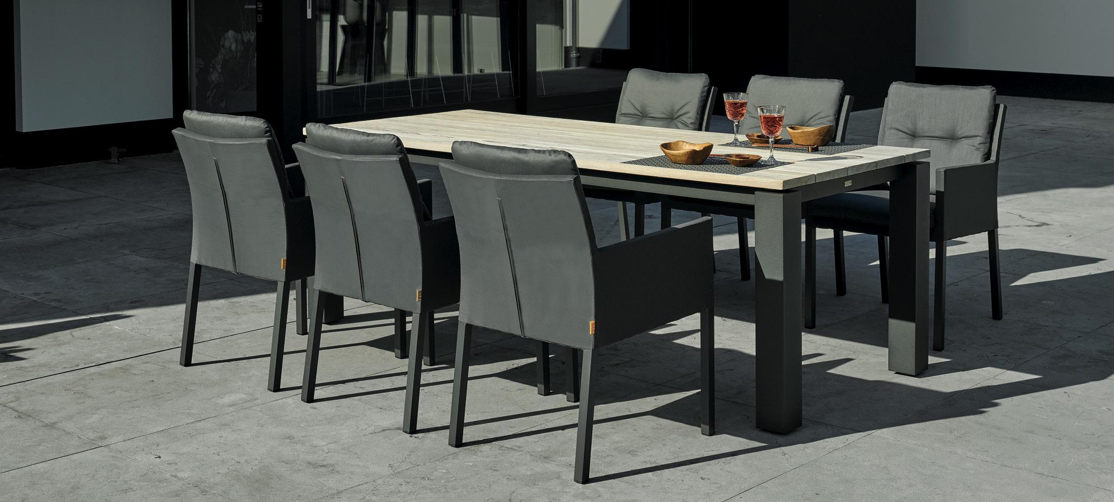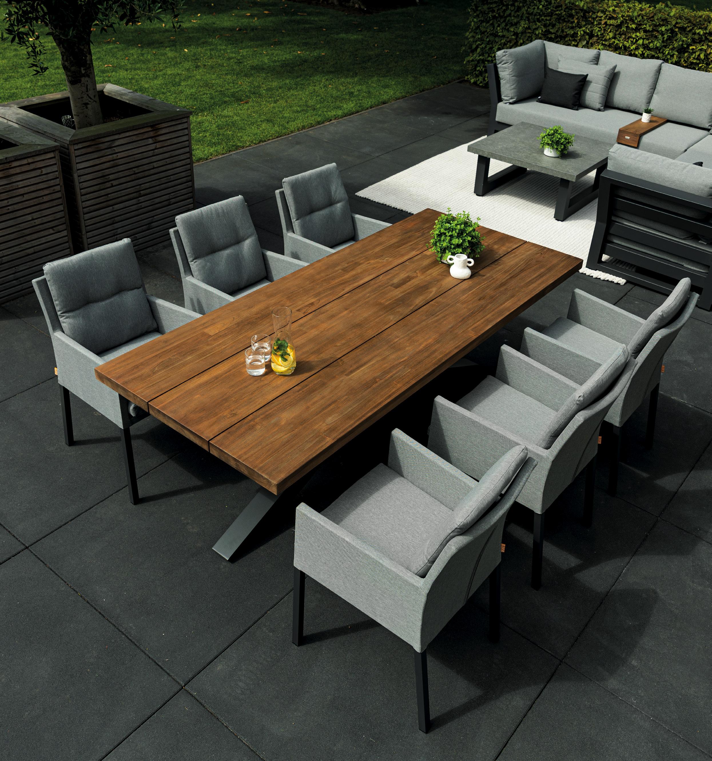 FRAME: LAVA ALUMINIUM TABLE TOP: ROBUST TEAK