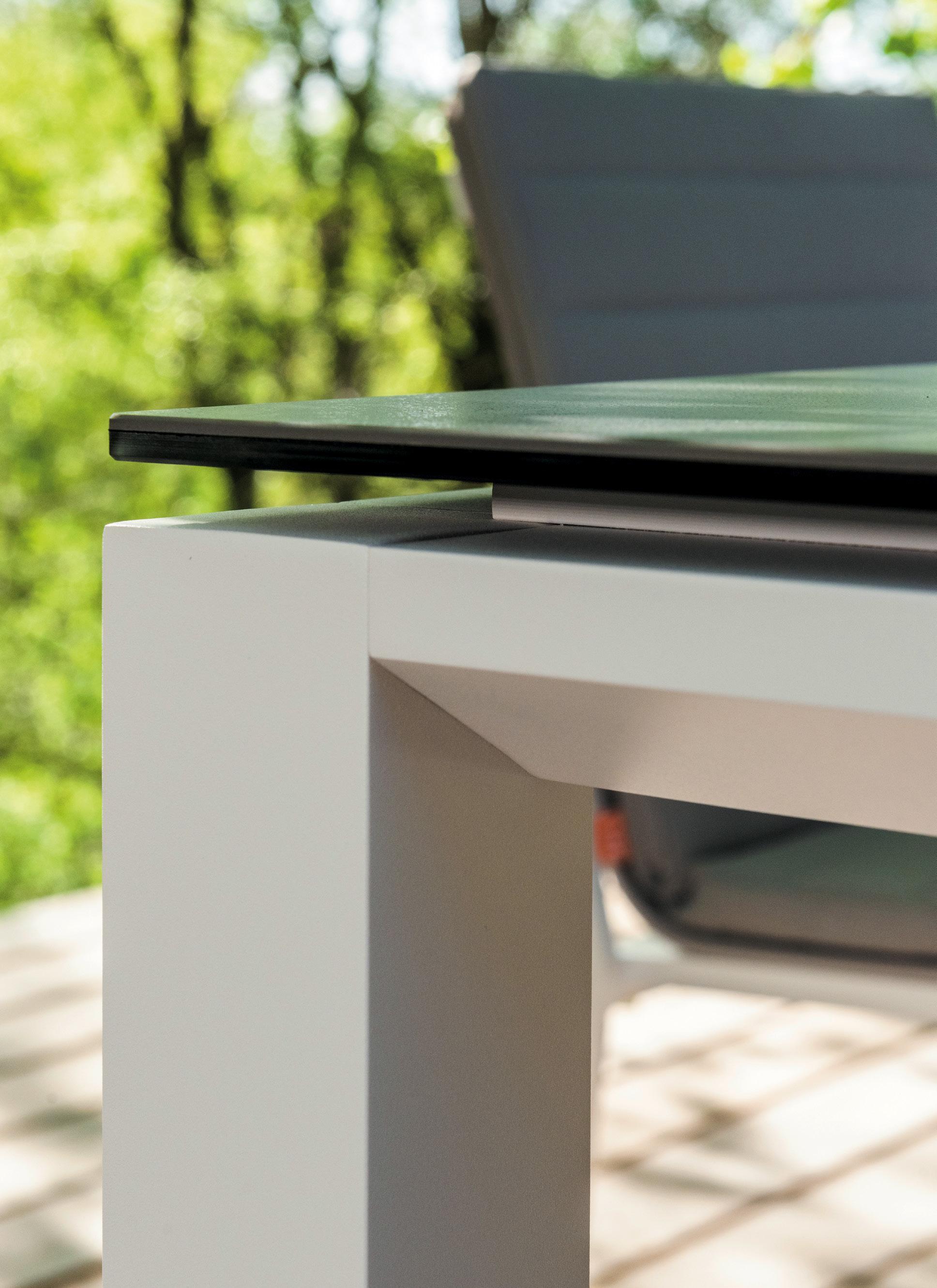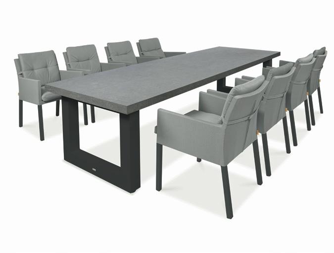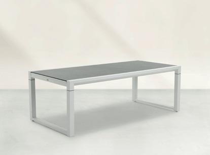 WHITE ALUMINIUM TABLE TOP: GREY TEAK FRAME: LAVA ALUMINIUM TABLE TOP: CONCRETE LOOK CERAMIC FRAME: WHITE ALUMINIUM TABLE TOP : CONCRETE LOOK CERAMIC L210 x D70 x H76 cm L240 x D100 x H76 cm L300 x D100 x H76 cm