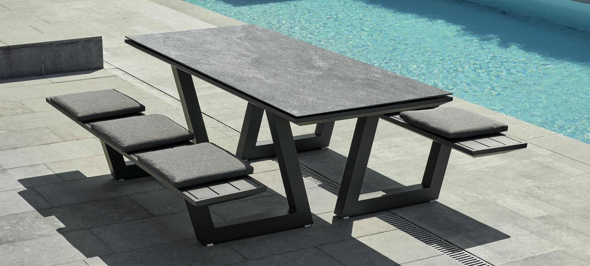 Our unique ceramic table tops have a remarkable strength. Ceramic is one of the hardest materials used in garden furniture. It has an extremely high scratch threshold, it is UV proof, colour fast and it is easy to maintain. Ceramic contains minerals that are compressed under high pressure and temperature to create the perfect ceramic structure.