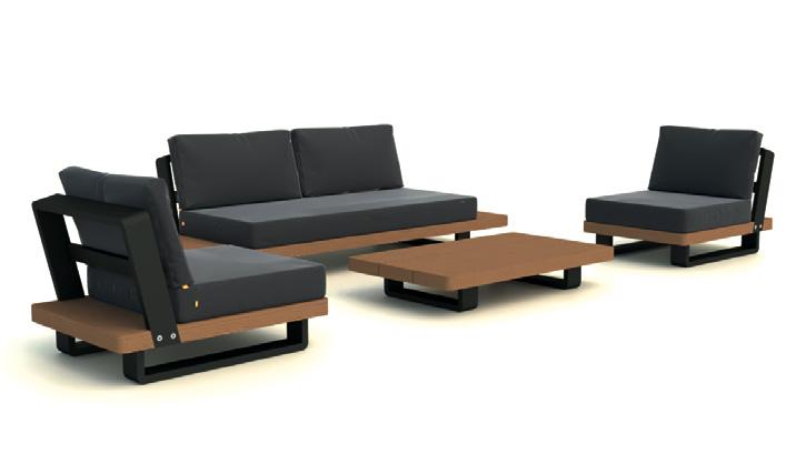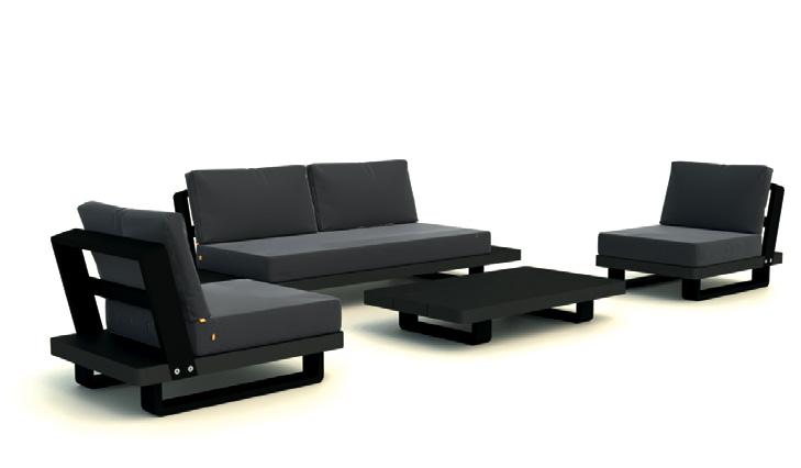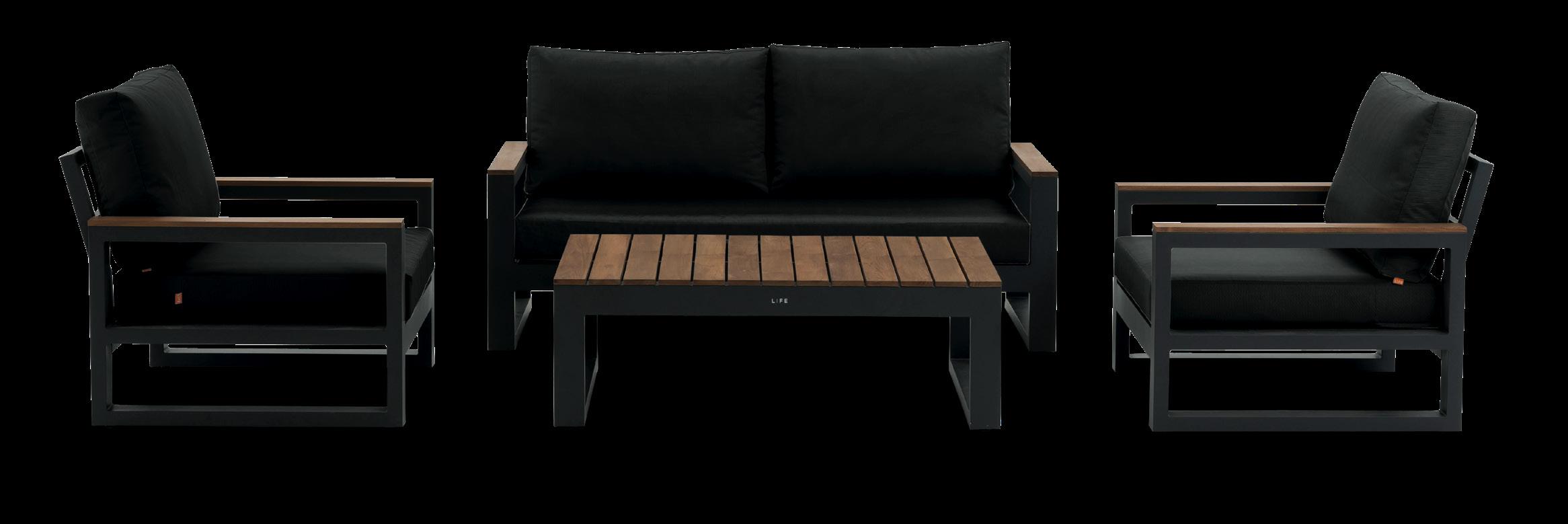 | LIFE OUTDOOR LIVING 19 2-SEATER BENCH ARM CHAIR L172 x D101 x H78 cm L81 x D101 x H78 cm ELEMENTS L69 x D69 x H35 cm DONNA - ONLY SOLTEX L40 x D80 x H40 cm FOOTSTOOL COFFEE TABLE CONCEPT L90 x D90 x H37 cm RECOMMENDED MAINTENANCE PRODUCTS ALL INFORMATION ON MATERIALS AND MAINTENANCE CAN BE FOUND IN THE LIFE MATERIALS AND MAINTENANCE BOOKLET