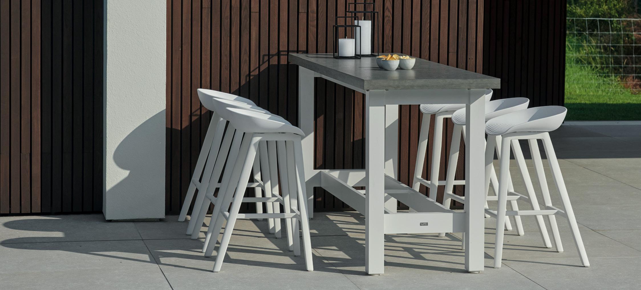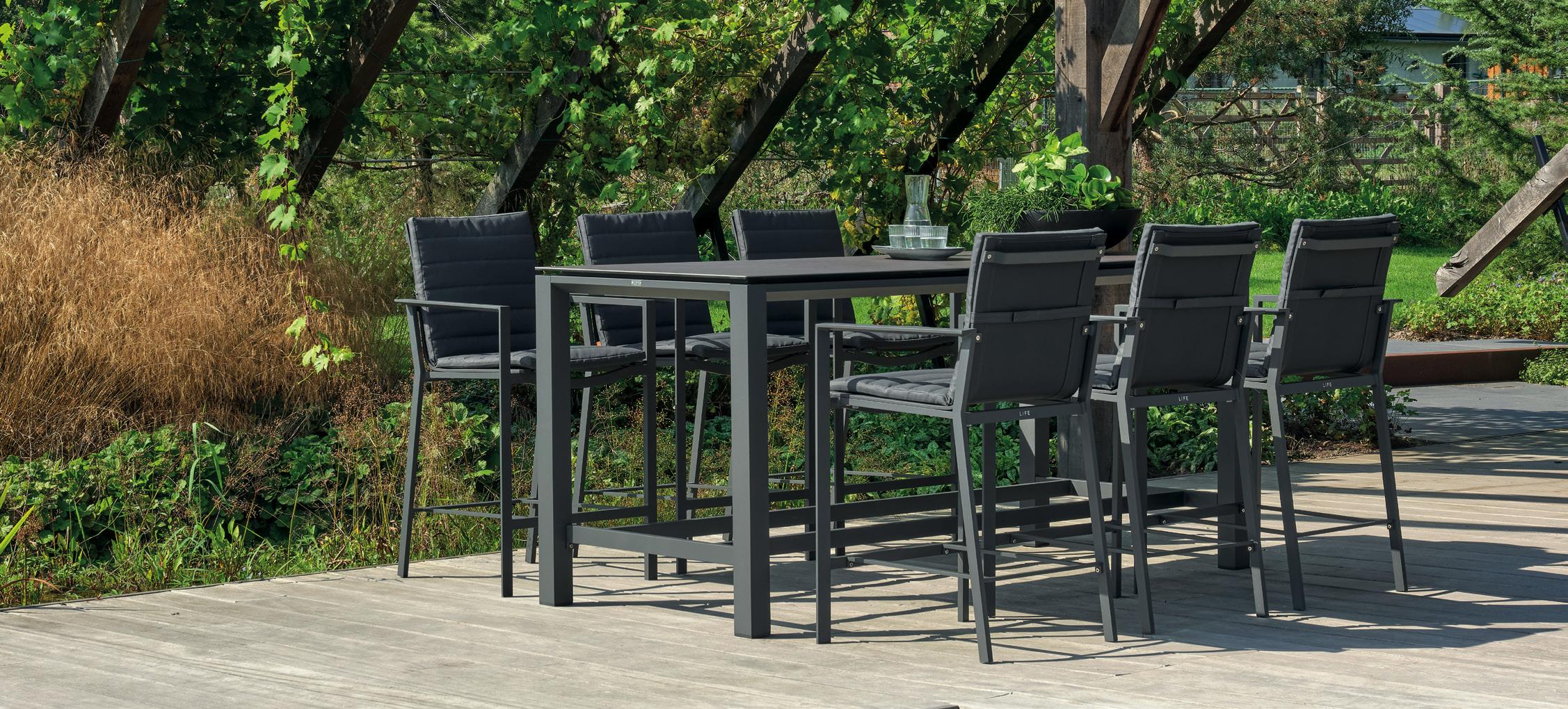 A clear overview of the bar collection for 2023 including bar tables and chairs which you can finish with a comfortable cushion.