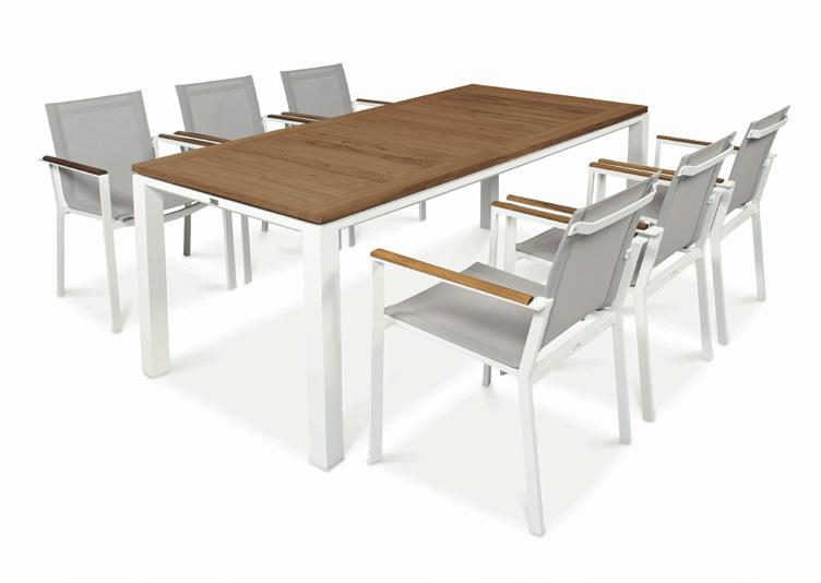 SIZES FRAME: WHITE ALUMINIUM TABLE TOP: GREY TEAK ROBUST TEAK