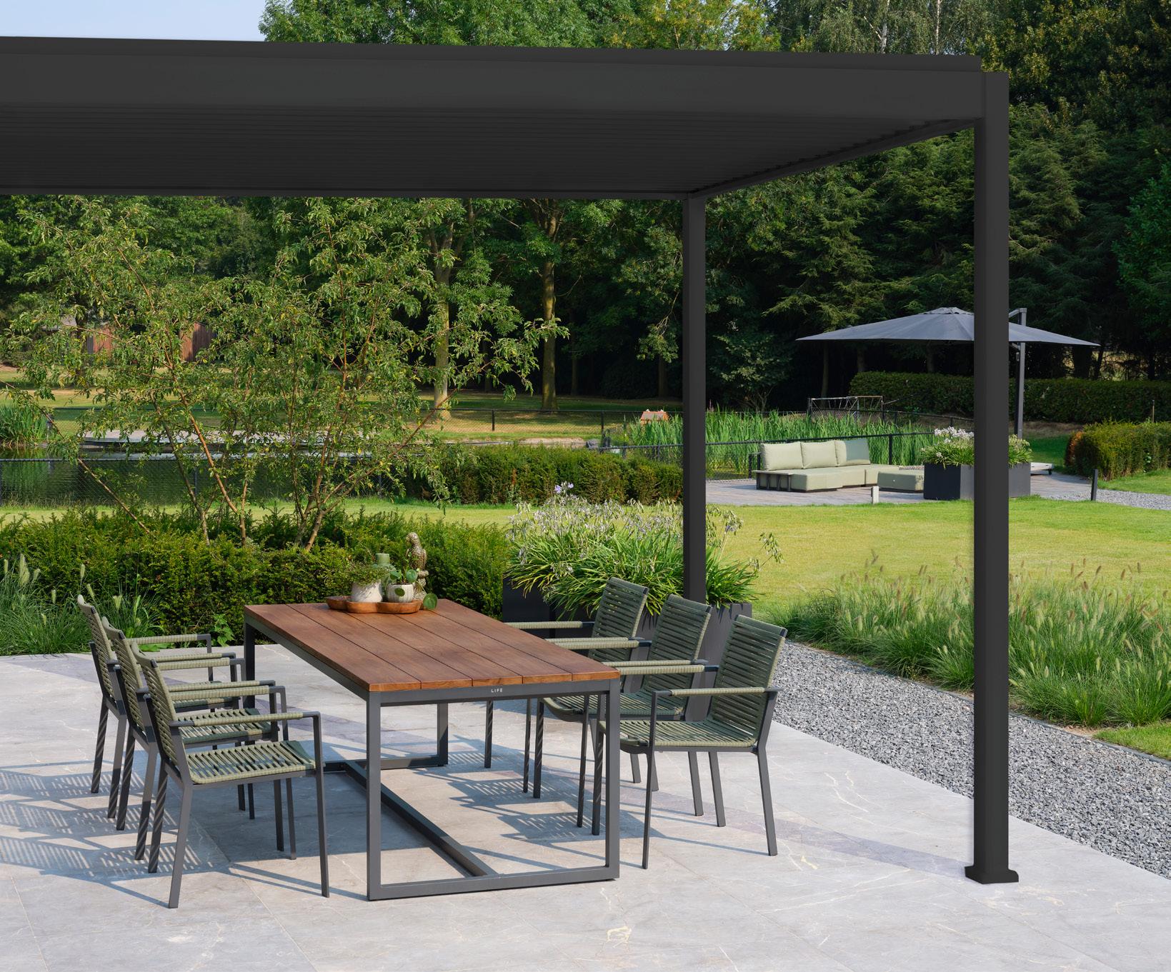 Een Gazebo is een luxe, vrijstaande overkapping die je tuin voorziet van beschutting en een stijlvolle uitstraling. Door de kantelbare lamellen kun je zelf bepalen hoeveel zonlicht of schaduw je wilt, terwijl je comfortabel buiten zit. Daarnaast kunnen de Gazebo’s aan de zijkanten worden voorzien van schaduwschermen voor extra beschutting en privacy.