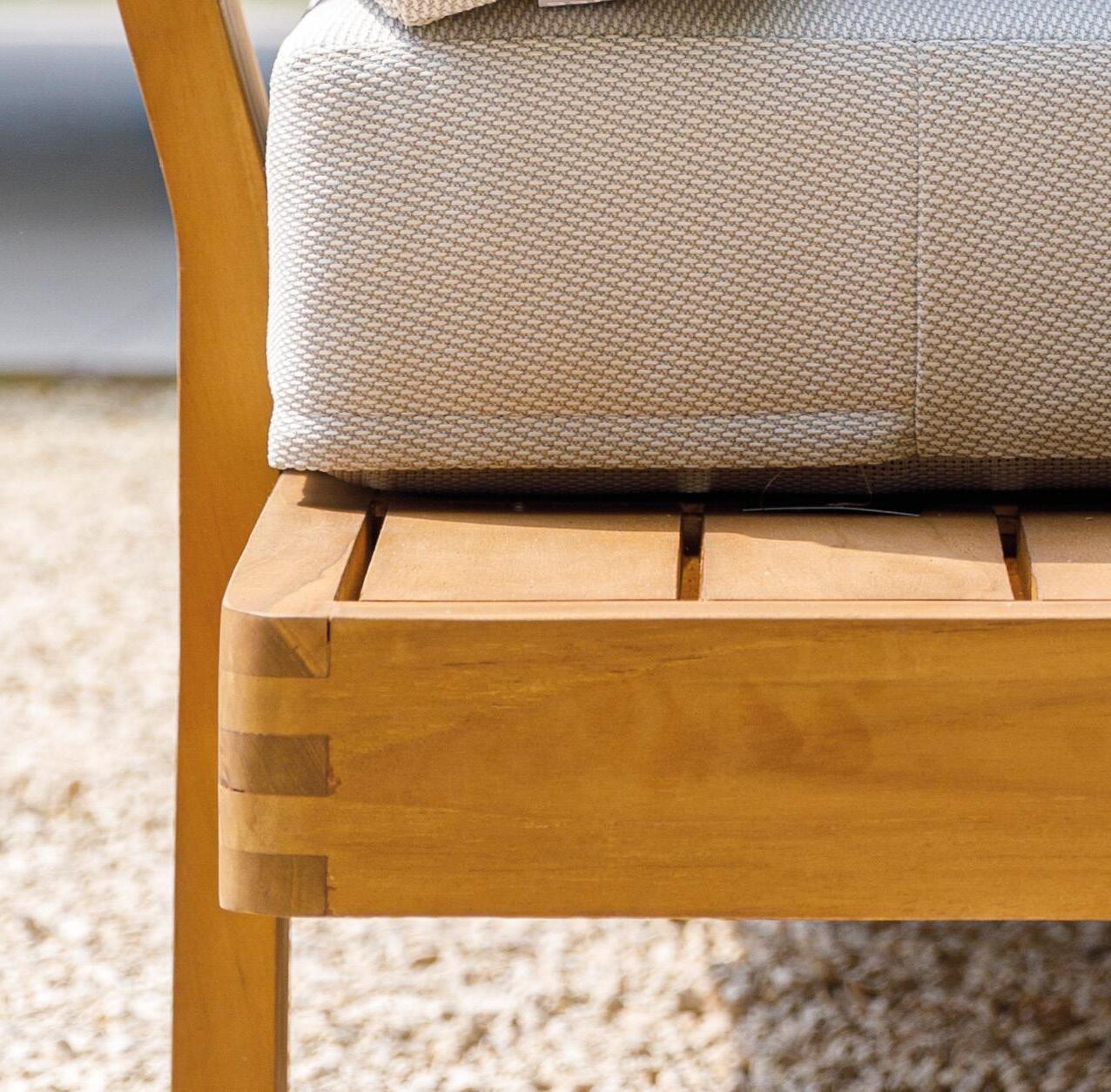 Teakhout is een duurzaam en splintervrij materiaal met een warme, natuurlijke uitstraling. Door de hoge concentratie olie droogt het niet uit en is het beter bestand tegen water. Na verloop van tijd verkleurt het hout op natuurlijke wijze naar platina grijs. Ons teakhout is duurzaam gekweekt en gekapt, en voorzien van het SVLK- of FSC®-keurmerk.