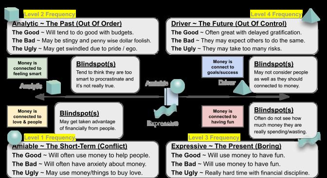 Expressive ~ If we chose the WAVY LINE and/or “Boring / Not Fun” we would refer to this personality as the “Expressive” personality. This personality tends to like to have fun. This type of personality can have challenges in saving money, following a budget, staying disciplined and not pursuing fun and the dopamine hit in their brain.