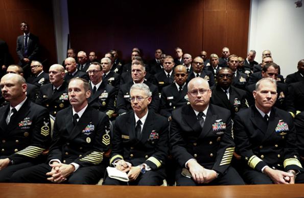 제독들 앞에서 연설했다.