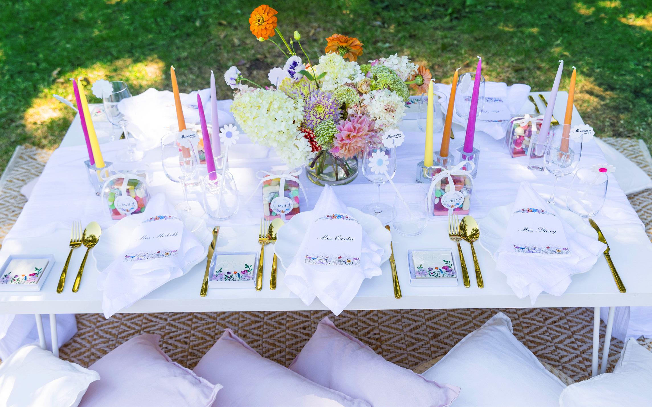 This is a minimalist look which proves that less is more. The beautiful stationery and florals were the highlight, but we had each element building on these colours to seamlessly create the overall look. The gardens where this picnic was set was the most idyllic backdrop for the event.