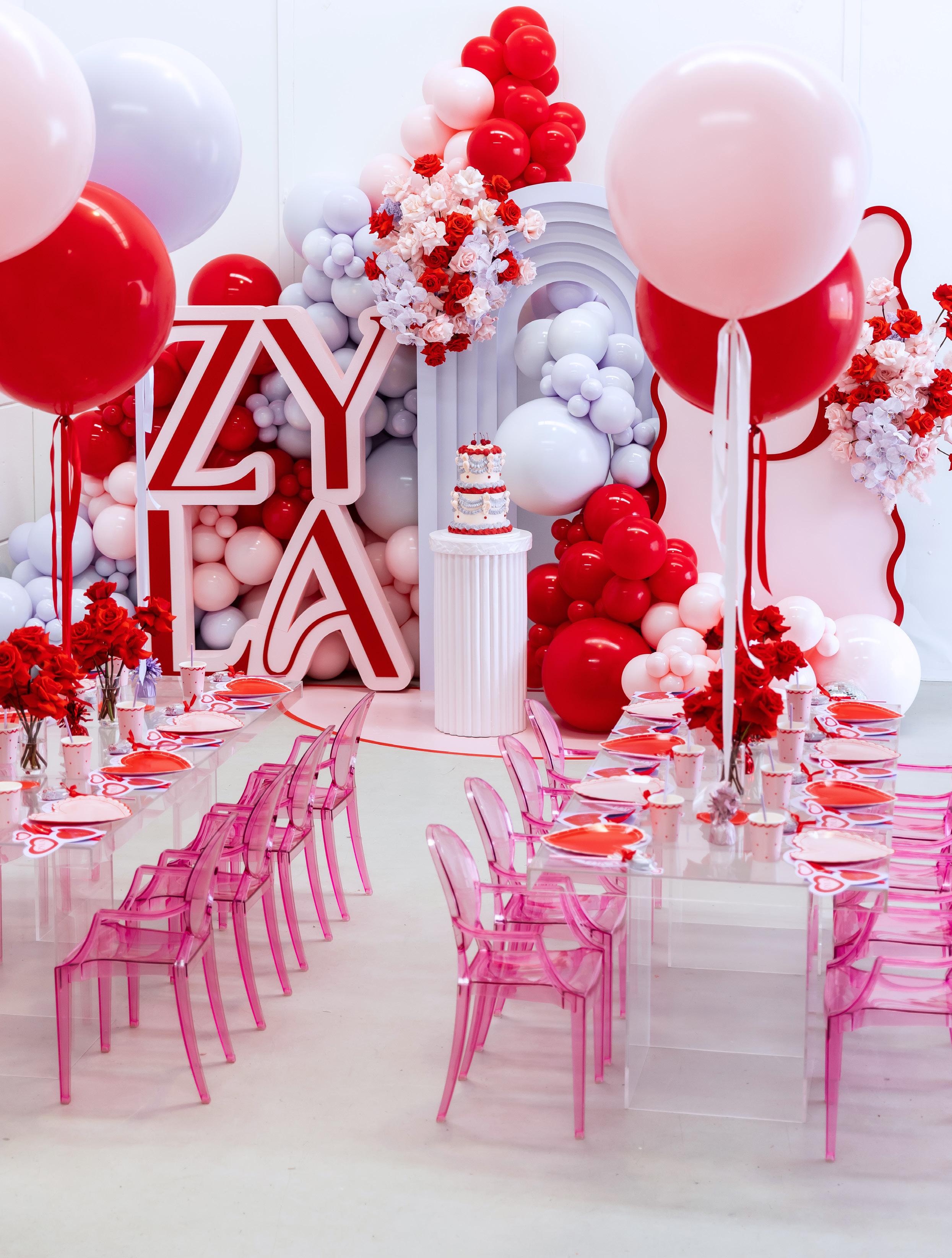 Because my daughter’s birthday is close to Valentine’s Day and the colour combo of Red, Pink and Lilac are trending at the moment I thought it would be great to incorporate all that into a theme.
