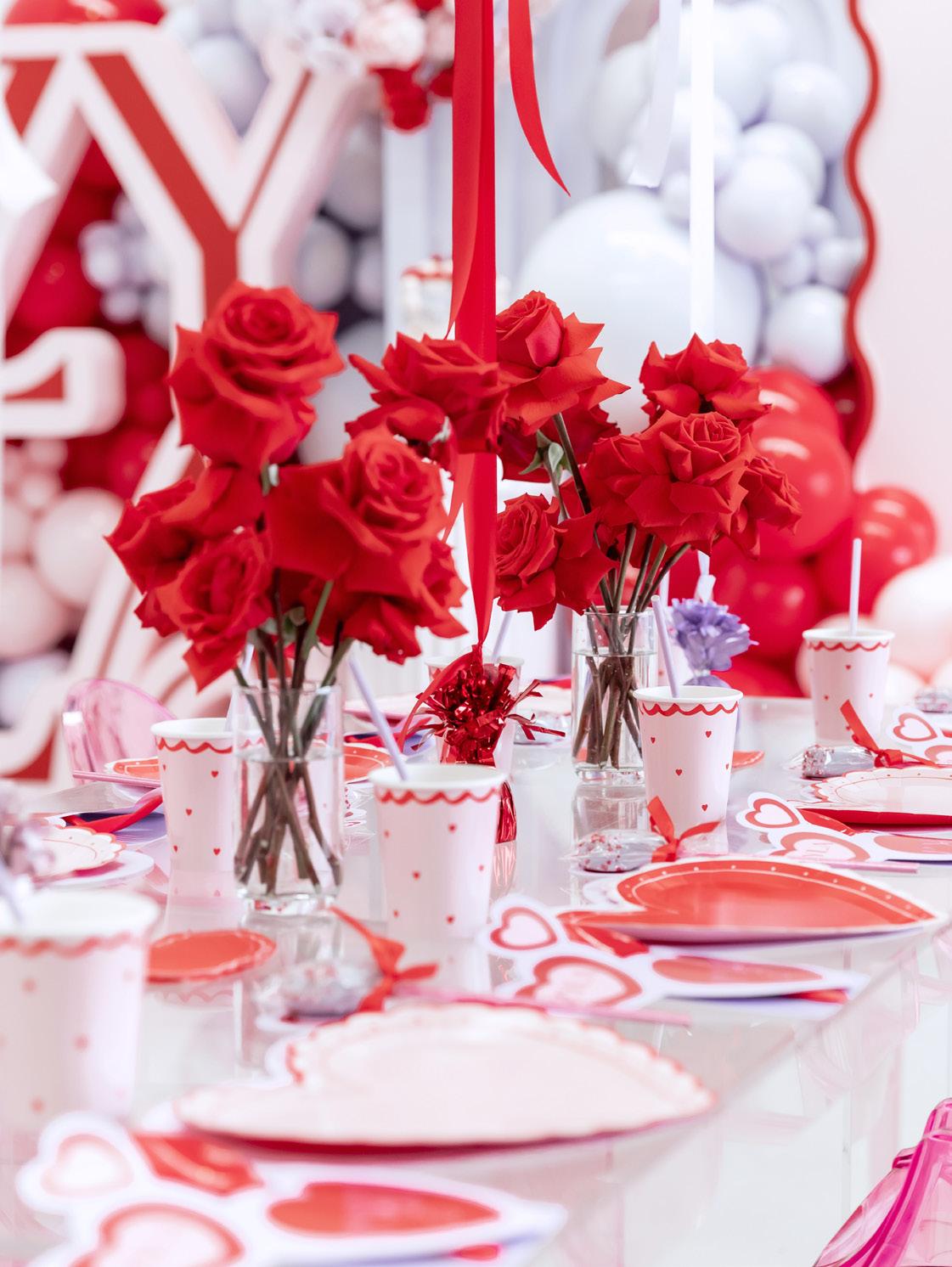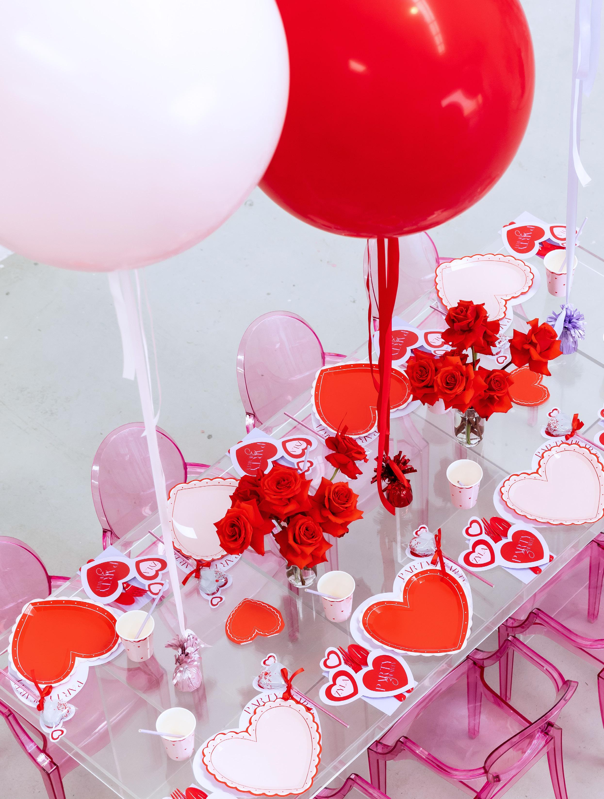 Concept, design, styling, props, balloon styling, florals, kids tables, handbags and heart glasses