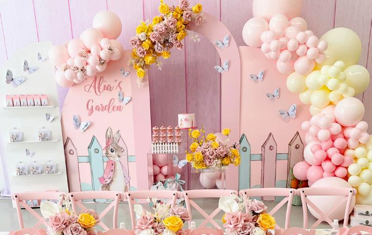 For Christenings & Baby Showers, we are going to see a shift from bright colours to neutral, earthy, moody & muted colours. Think abstract, dynamic, mixing textures, curved finishes, abstract flooring, layering and imperfect handcrafted props. For kids birthday, we are going to contiue seeing the rise of themed parties inspired from Disney and popular movies. Think themed flooring, backdrops, immersive interactions & photo moments.