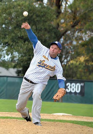 MASTERS ACTION: (Top row fom left) Daniel Long, Legends B, lets go a fast ball against Adelaide Aces; Nathan Tana, Legends B, looks to hit safely & Ric Jordan, Centrale, Stretches far enough to put out the Northern Aces Grey batter and (bottom row from left) Zac Ratcliffe, Legends B, about to unleash on a big fat pitch; Geoff Crouch, Centrals, stretches to hit a curve ball in the gold medal game against and Ken Rowe, Legends B unleashes on a fast pitch