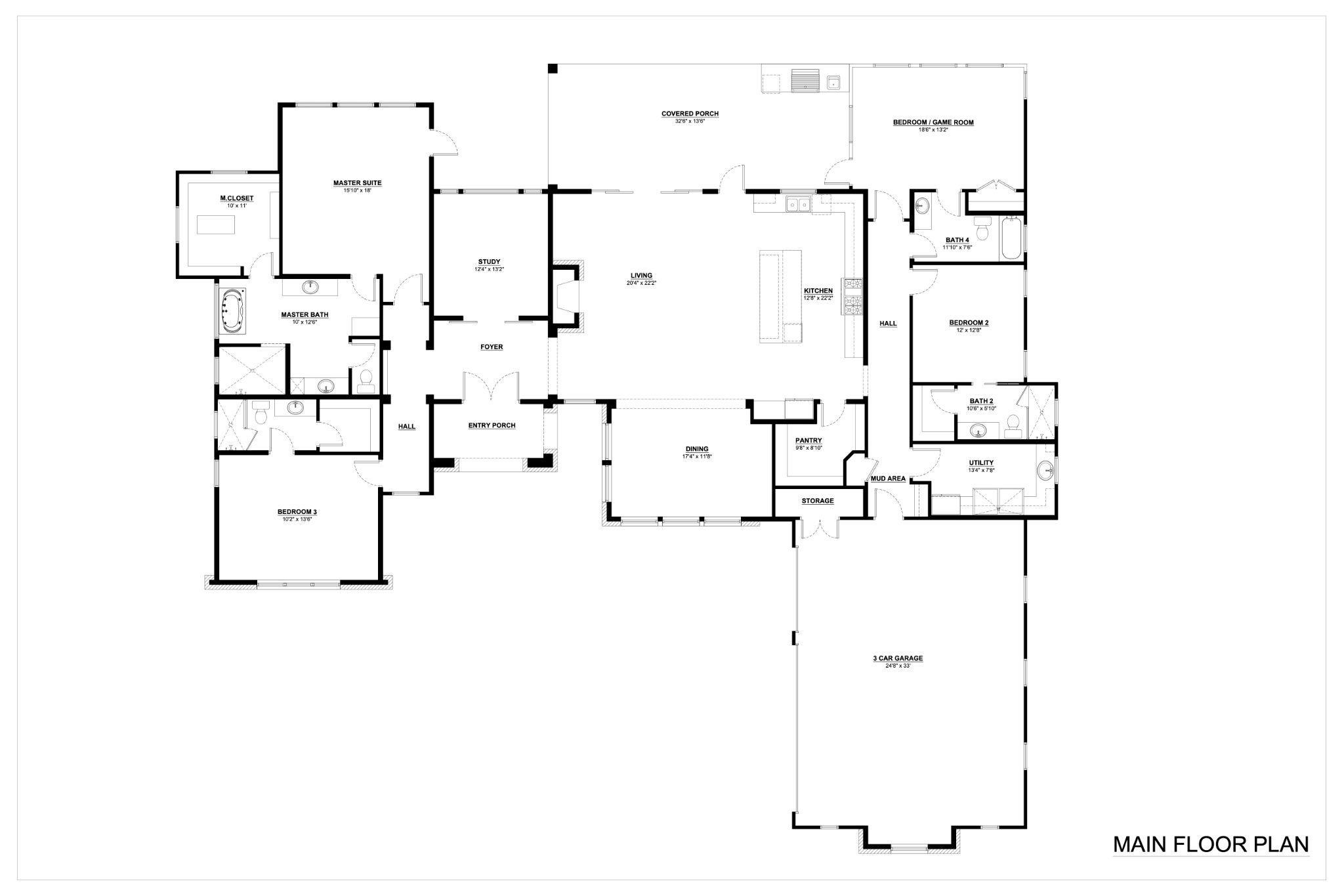 ❖ French Iron Doors ❖ Panoramic Sliding Glass Doors ❖ Hard Surface Flooring Throughout ❖ Fully Extended & Soft Close Cabinet Drawers ❖ Large Master Suite with Freestanding Tub ❖ Stainless steel Thermadoreappliances ❖ Outdoor Patio Kitchen FEATURES ❖ 3 Bedrooms ❖ 4 Bathrooms ❖ Study ❖ Game Room OR Additional Bedroom ❖ Covered Porch & Patio ❖ 3-Car Garage PROJECT SPECIFICATIONS Living Area 3639 sf Garage 948 sf Porch 97 sf Patio 461 sf Total 5145 sf INSPIRATION