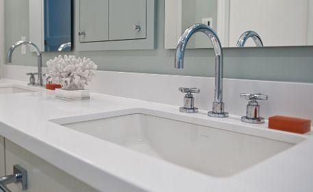 Trinsic Single Handle High-arc Bathroom Faucet - Chrome COUNTERTOP Quartz Vicostone Valley White Polished