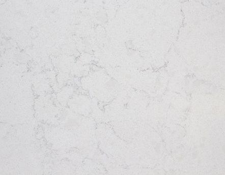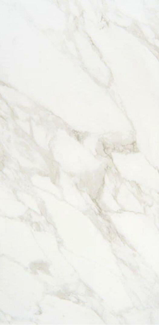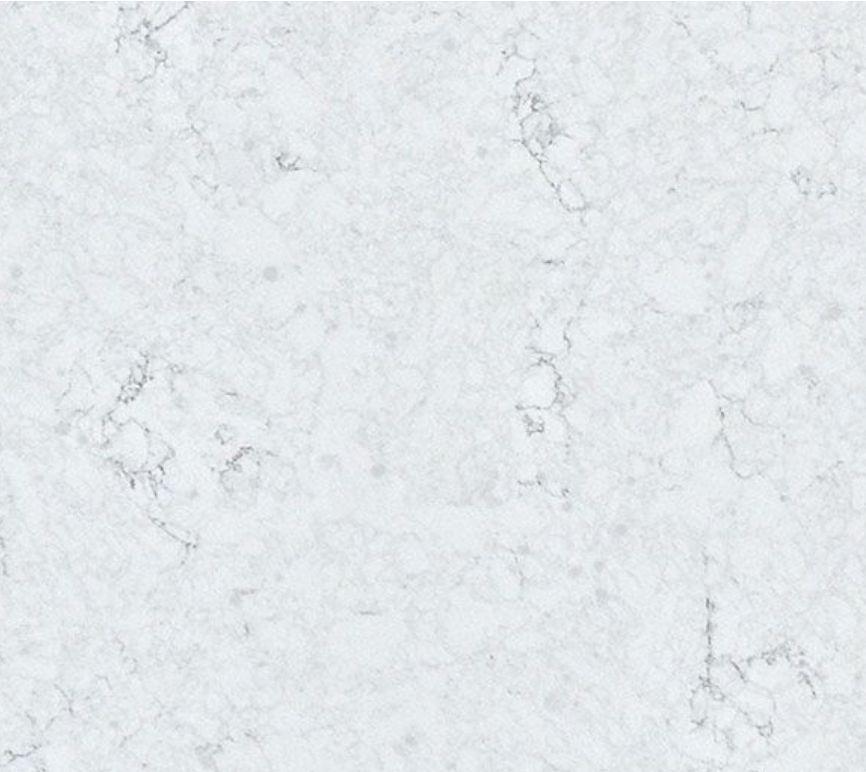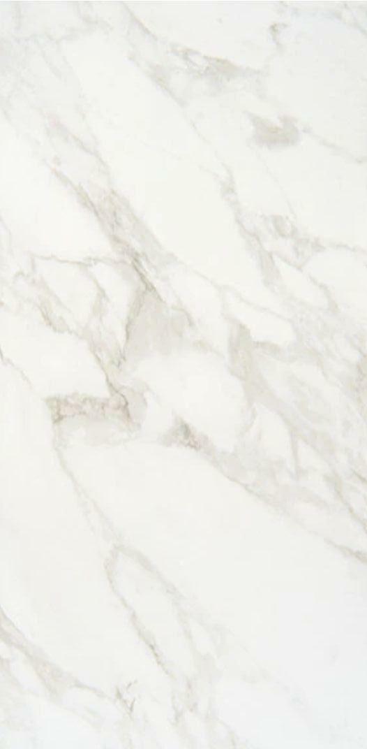 Costar Calacatta Sky CT75 12x24 33% Side to Side / #89 Smokey Grey CABINETS Style: Milano Perimeter Color: SW 7006 Extra White Hardware: Halifax Polished Chrome Style Color