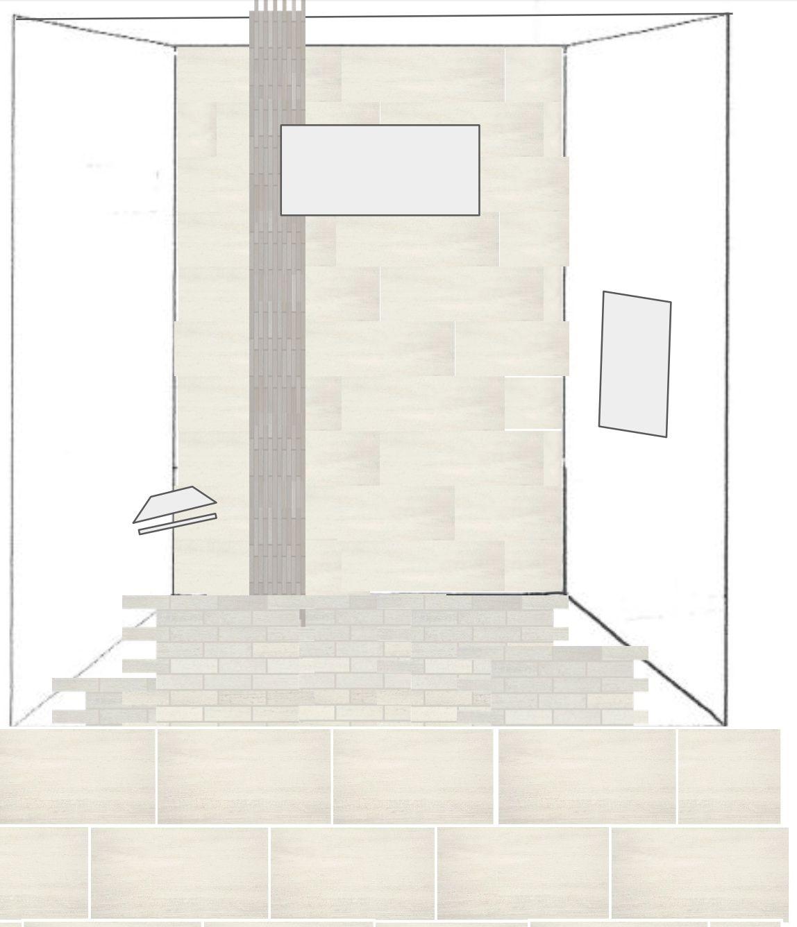 BATHROOM 2 - TILE LAYOUT TUB & PLUMBING Delta Chrome Shower Set SHOWER FLOOR TT Lungarno Anchor Pewter 2" Hex / #90 Light Pewter SHOWER WALL Elect White EL30 12x24 33% Horiz / #90 Light Pewter