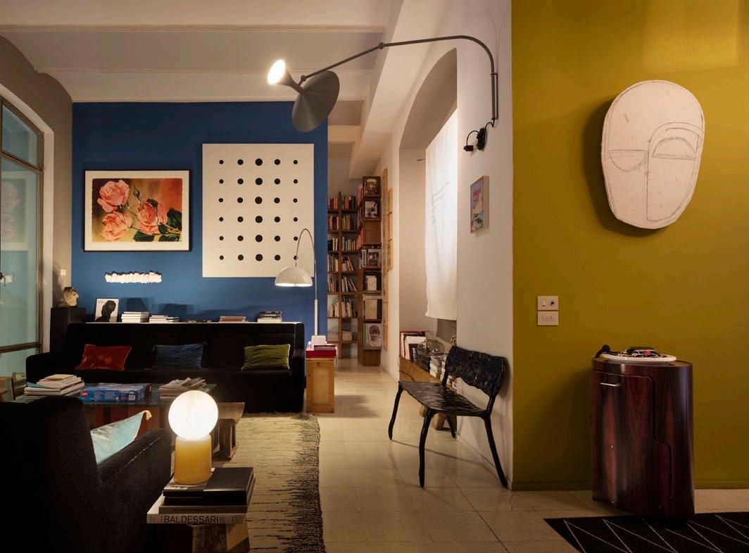 Splashes of colour, movement and light. Situated in the heart of Milan’s Porta Venezia, the private home of Tiziano Vudafieri and his wife Catherine Vautrin is a spacious loft in the internal courtyard of a traditional Milanese residential building dating back to the last century. Through the eclectic selection and clever combination of classic design pieces and contemporary artworks, the couple has turned the abandoned glass factory into part of their own personal story. Architect and fashion manager by day, collectors by night, Vudafieri and Vautrin are continually reshaping the interior of their home thanks to their permanent intellectual curiosity, and have now arrived at the fourth incarnation of their home in 12 years. Their “modern, bourgeois house”, as they call it, is a place where you can live, but also a receptacle in which art is regularly placed to skilfully transform the living spaces. Across three floors, the 340 square metres that surround a patio are bursting at the seams with stories.