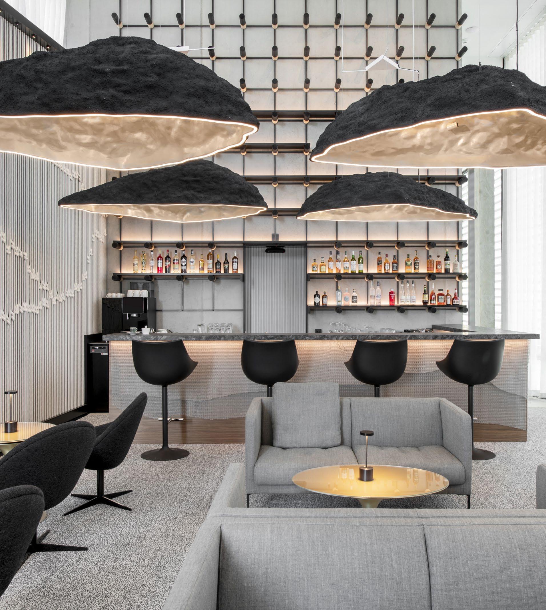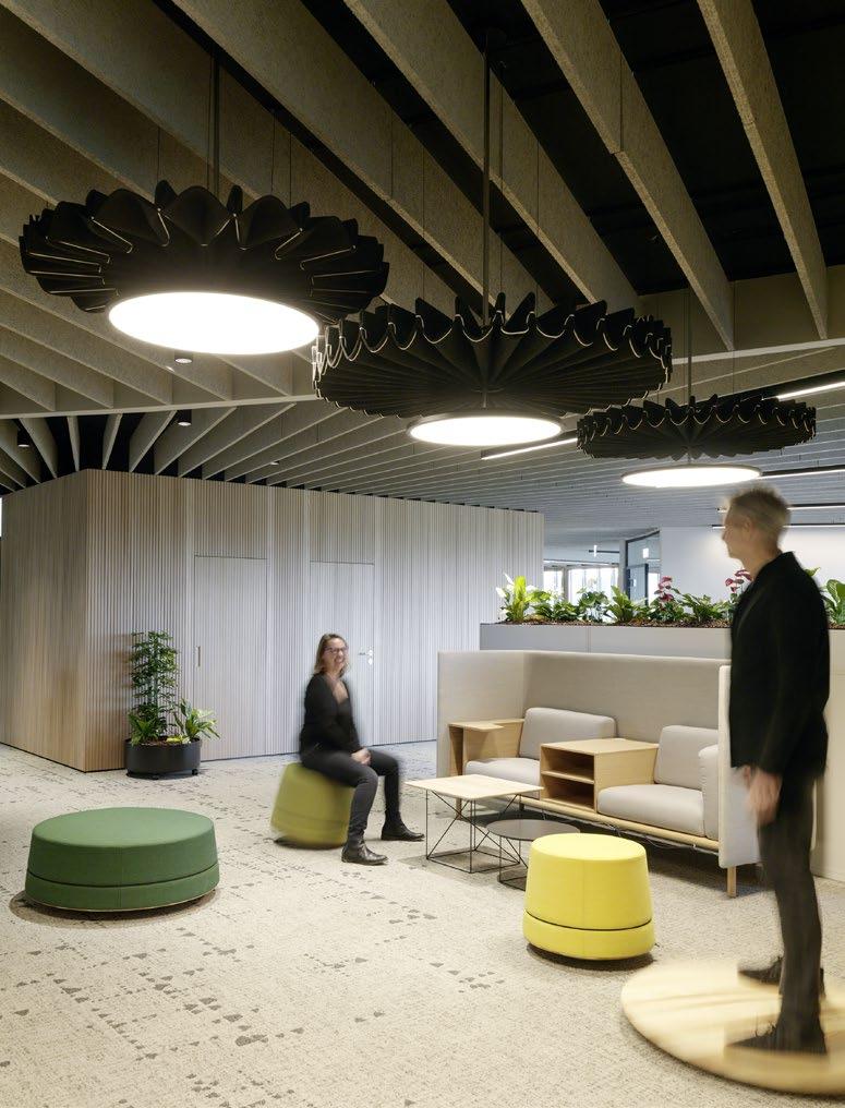 Photo top right: HEX-O modular lighting and acoustic solution for XAL at the EANS Flight Control Centre by KAMP Arhitektid.