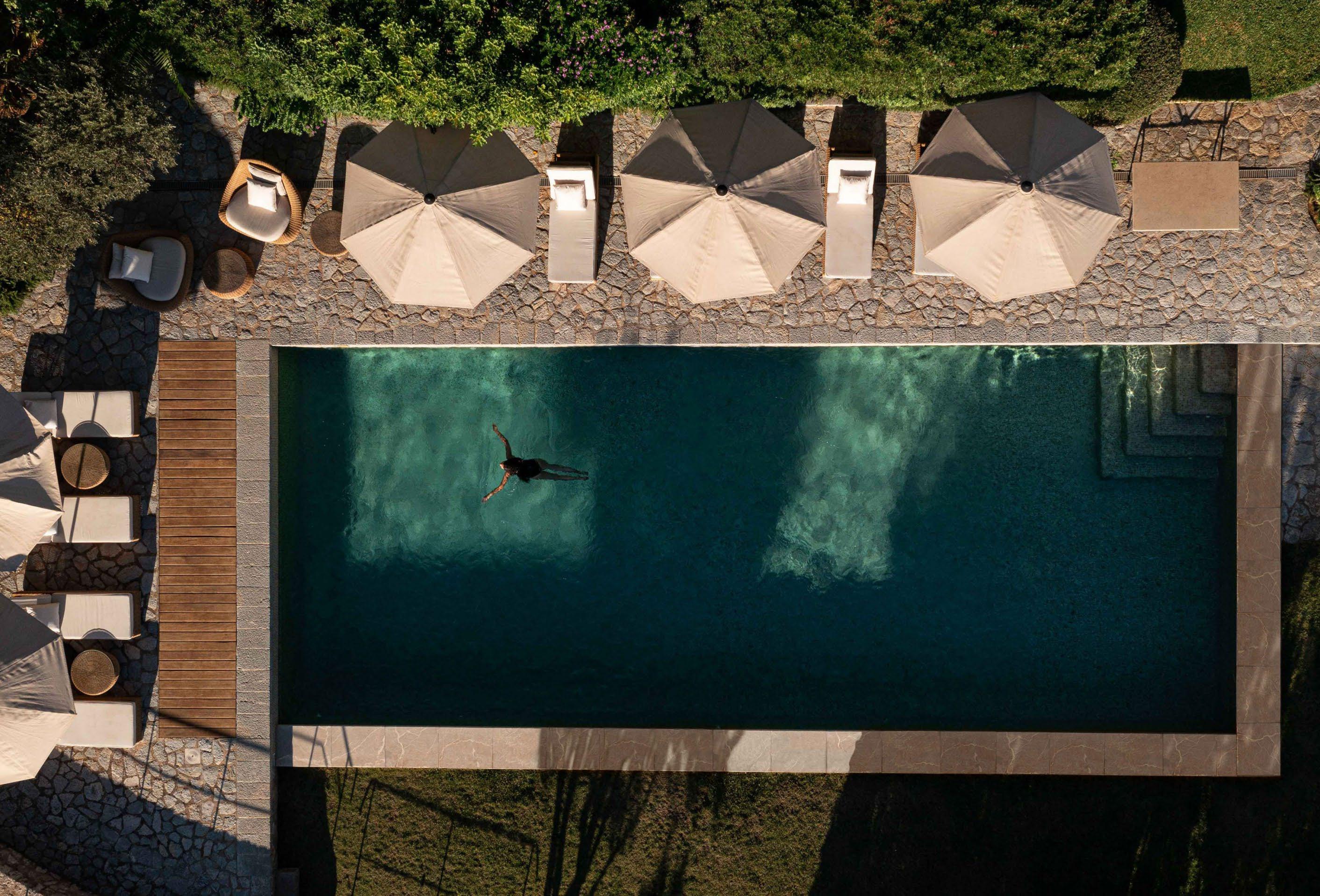 Imagine an old, secluded house from the 1950s transformed into the perfect summer surf shack. Kelly Wearstler refurbished the house keeping many of the original interior elements intact, like kitchen and bathroom fittings that were still in good condition, but replaced things like the shag carpet with seagrass. She was inspired by the architectural shell of the house, its earthy and rustic tones, and wanted to furnish it with handmade, rustic and raw objects. Vintage and contemporary designs make the property feel new yet still tell its untold history, with Isamu Noguci lamps, comfortable Soriana sofas by Afra and Tobia Scarpa and a blackened wood console by Base 10. Kelly Wearstler also “borrowed” a number of pieces from her warehouse in downtown Los Angeles, which are vintage treasures she has found throughout her career. “I have a huge collection of items that I’ve bought over the years at auctions and online,” she says. “I stock them in my inventory for exactly this type of project.”