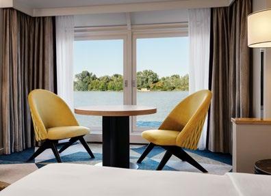 Kürzlich fertiggestellt wurde das Projekt im Hilton Vienna Danube Waterfront. Hier realisierte Voglauer als Generalunternehmer den Innenausbau von 365 Zimmern sowie den gesamten öffentlichen Bereich. Entstanden ist ein interessanter Mix aus verschiedenen Haptiken, Materialien und Farben. Petrol und Terrakotta gemischt mit sanften Braun- und Grautönen bringen die Nähe zum Wasser auch optisch in die Zimmer und verleihen ihnen eine moderne „Wiener Gemütlichkeit“.