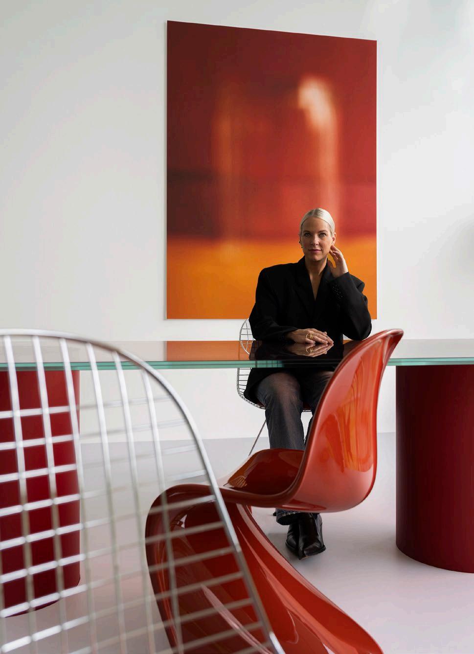 Sabine Marcelis, die niederländische Designerin mit einem Gespür für Farben und Formen, hat im obersten Stockwerk des VitraHauses eine Installation geschaffen, die neue Perspektiven auf das Wohnen eröffnet. Dabei hat sie ein stringentes Farbschema angewendet und zwei ikonische Vitra-Produkte des dänischen Designers Verner Panton neu interpretiert.