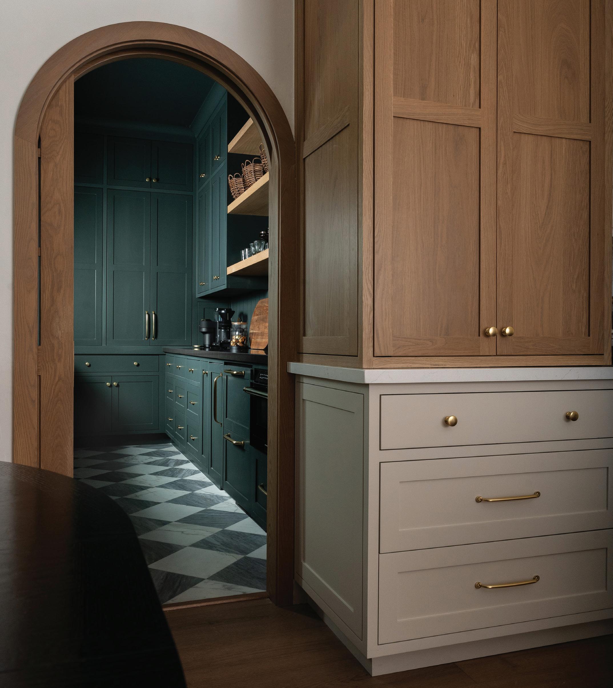 One of the most powerful ways to refresh a home is through color. At Château Noir, a moody pantry tucked behind a custom white oak arched pocket door became one of our favorite moments—a space that, when revealed, feels unexpected yet perfectly reflective of our clients’ personality. It’s a small moment that transforms the everyday, showing how paint can elevate even the most overlooked spaces.