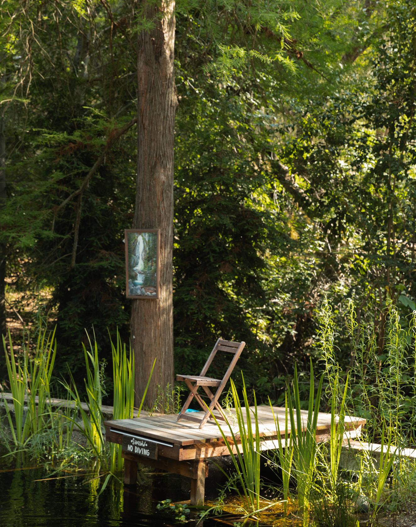 The land is unlike any other in the area where a microclimate is enjoyed due to being tucked away and shaded by a canopy of lush plant life. Sam constructed a lily pond and planted three species of redwoods around it–the Giant Sequoia, Coast Redwood, and Dawn Redwood, which was thought to be extinct for 20 million years until 1944 when a Chinese botanist found some living specimens in central China. Adjacent to all three cabins sits a mid-century pool originally constructed by Sam, where he would teach the neighborhood kids how to swim. Neglected for decades, the pool was brought back to life under John's lead. Now, it serves guests as a water garden, utilizing a combination of plants, beneficial bacteria, and natural filtration systems to maintain clean and balanced water.